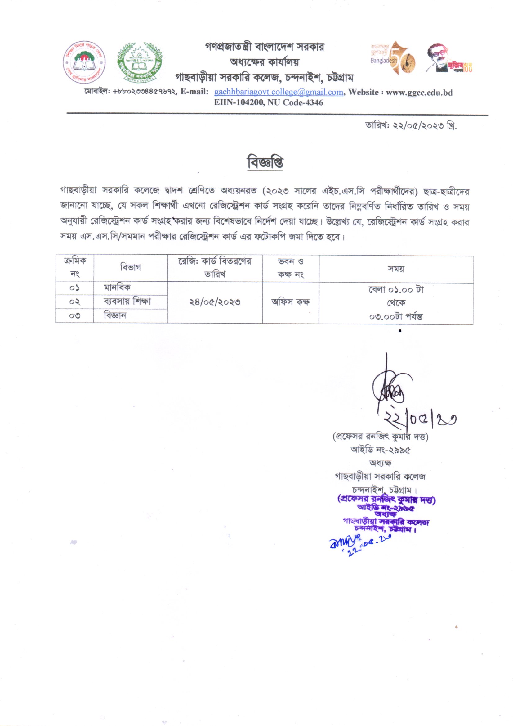 রেজিস্ট্রেশন কার্ড বিতরণ প্রসঙ্গে।