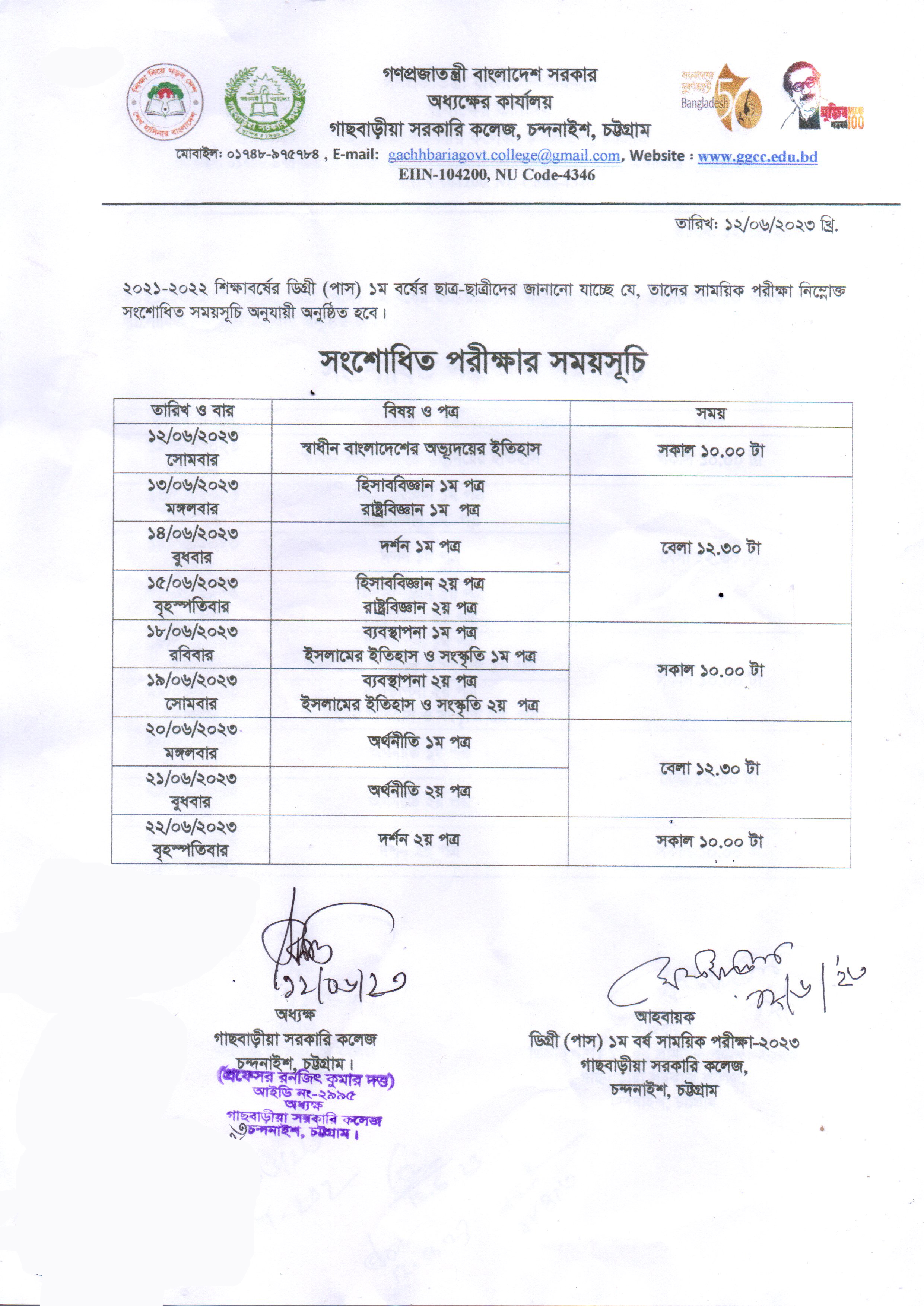 ডিগ্রী (পাস) ১ম বর্ষ সাময়িক পরীক্ষার পরিবর্তিত সময়সূচির রুটিন