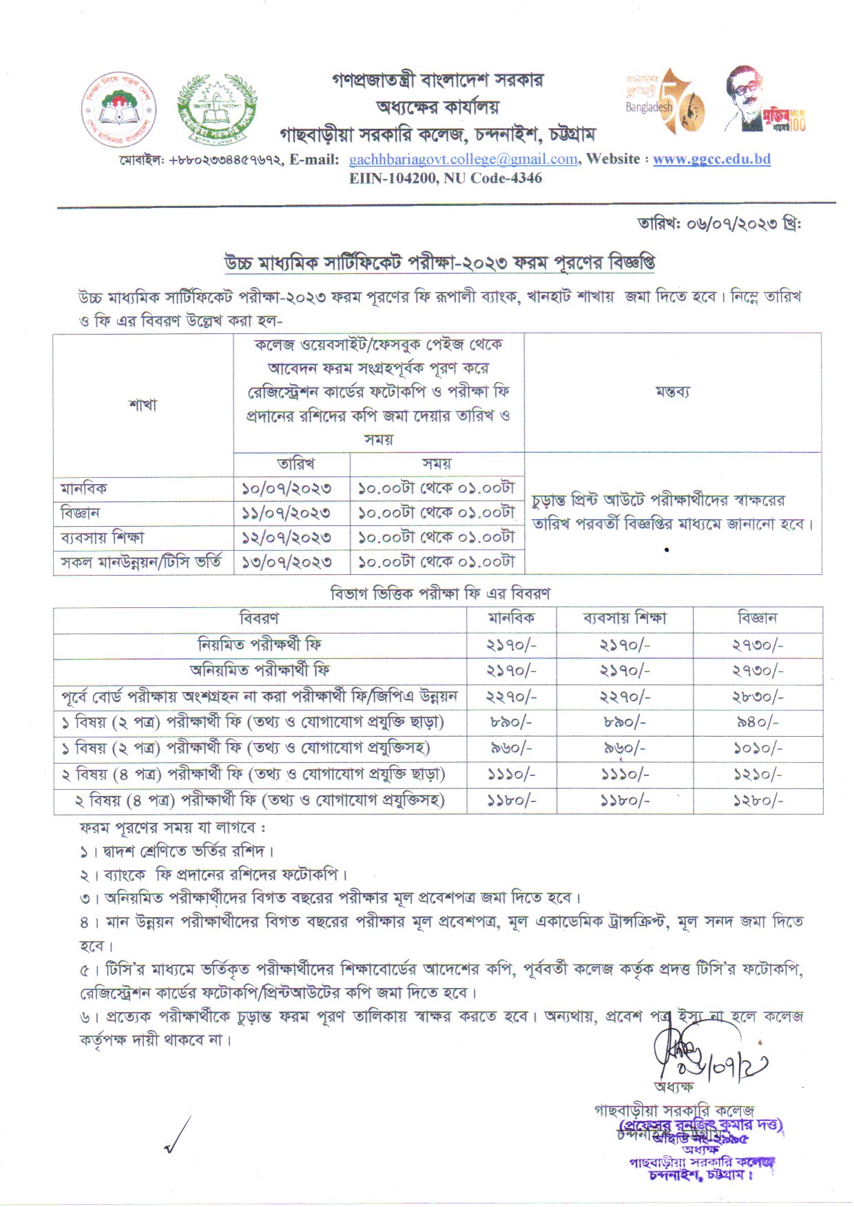 এইচএসসি পরীক্ষা-২০২৩ এর ফরম পূরণের বিজ্ঞপ্তি