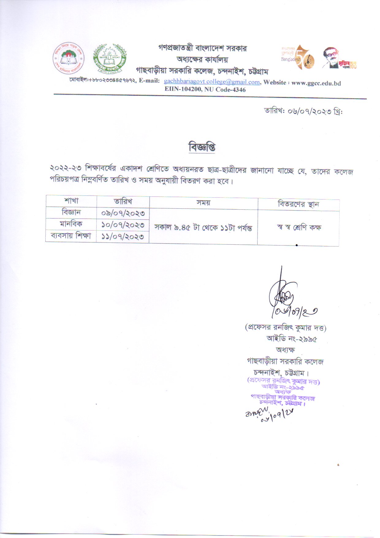 একাদশ শ্রেণির পরিচয় পত্র বিতরণ প্রসঙ্গে