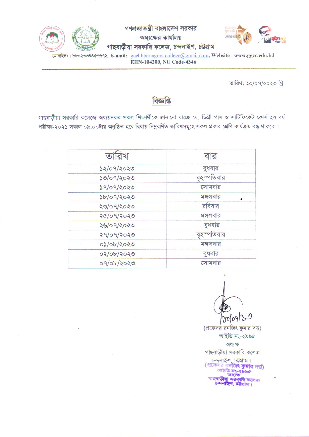 গাছবাড়ীয়া সরকারি কলেজ, চন্দনাইশ, চট্টগ্রাম।