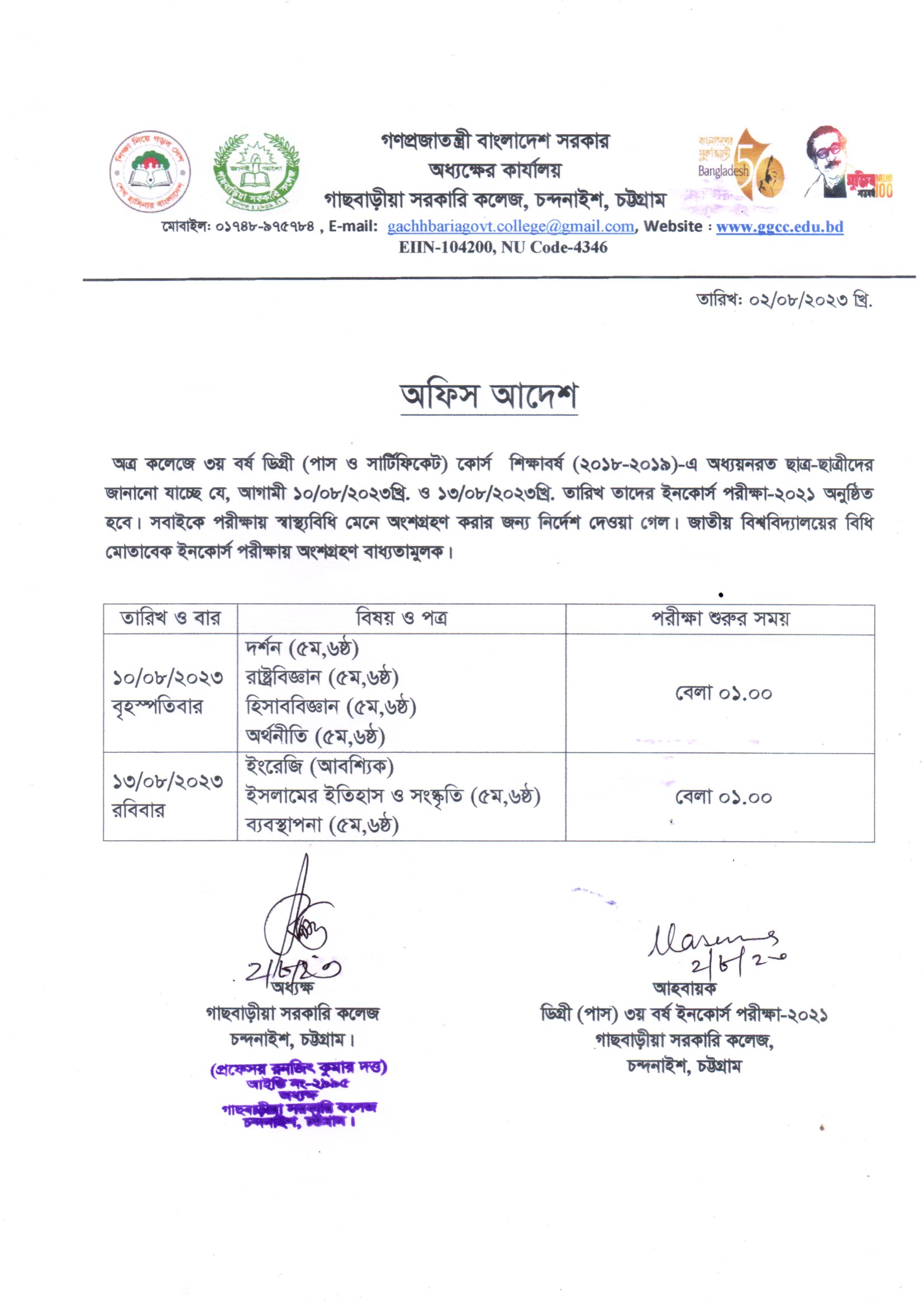 ডিগ্রী পাস ৩য় বর্ষ ইনকোর্স পরীক্ষার রুটিন