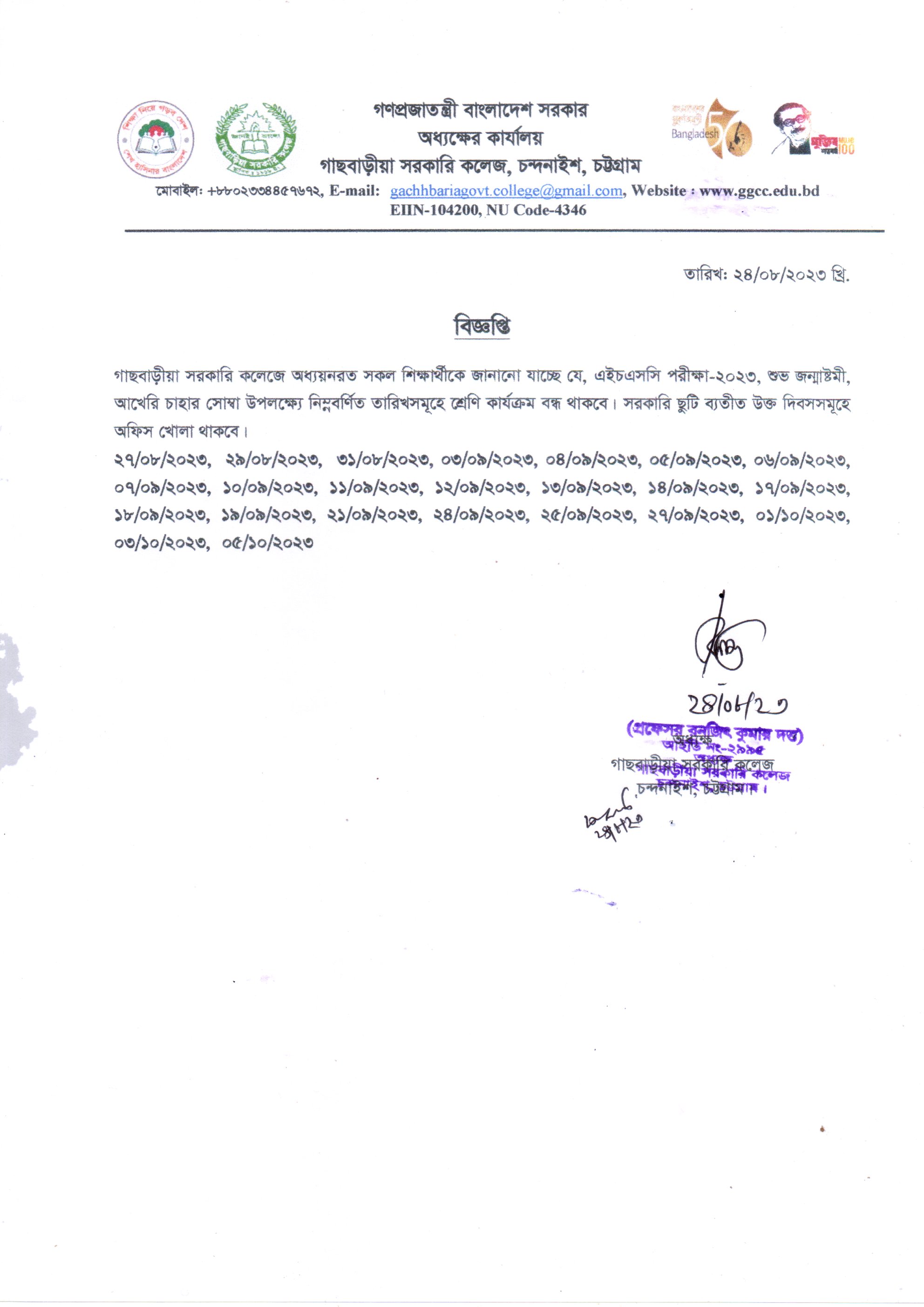 গাছবাড়ীয়া সরকারি কলেজ, চন্দনাইশ, চট্টগ্রাম।