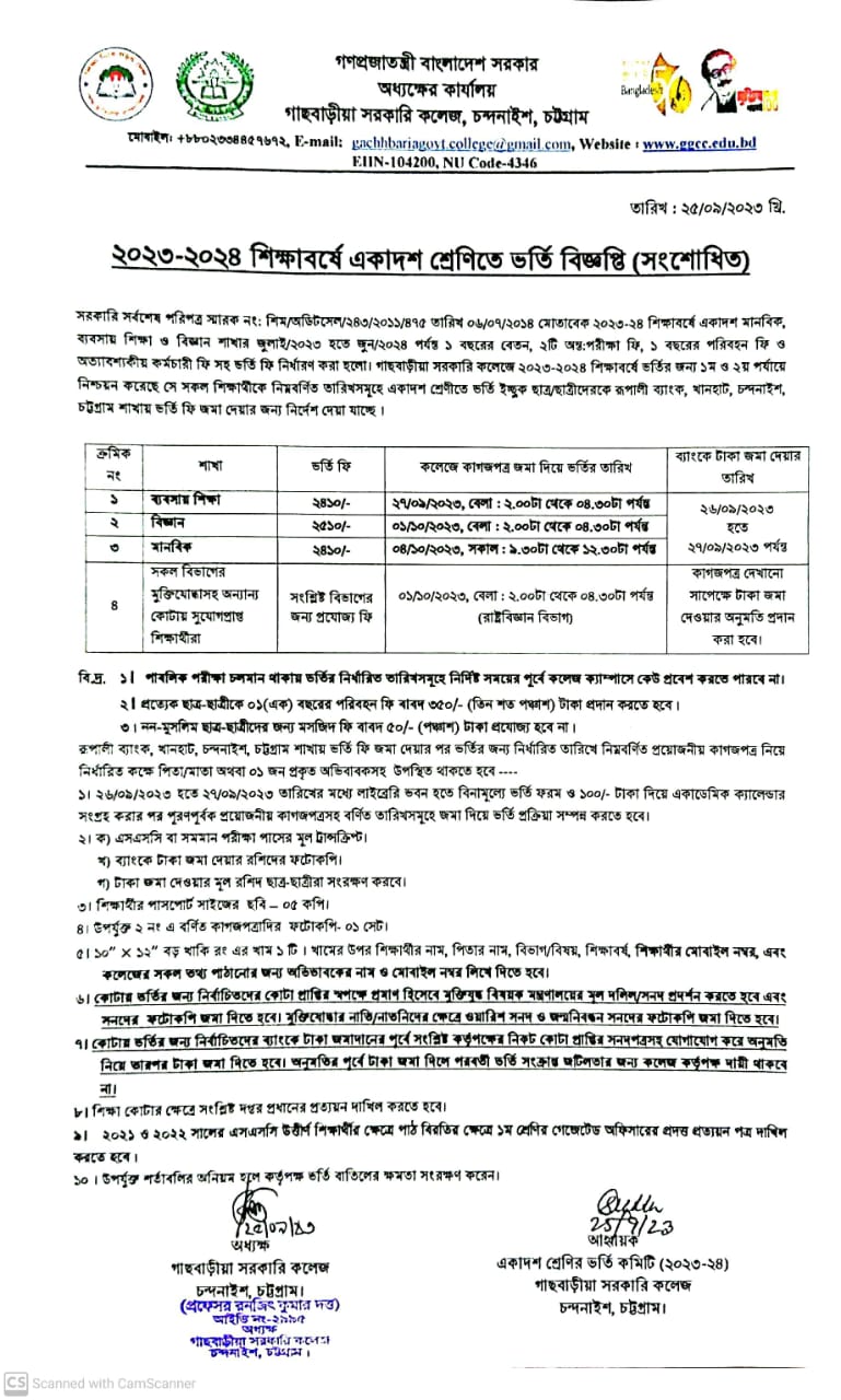 ২০২৩-২৪ শিক্ষাবর্ষে একাদশ শ্রেণিতে ভর্তি বিজ্ঞপ্তি (সংশোধিত)