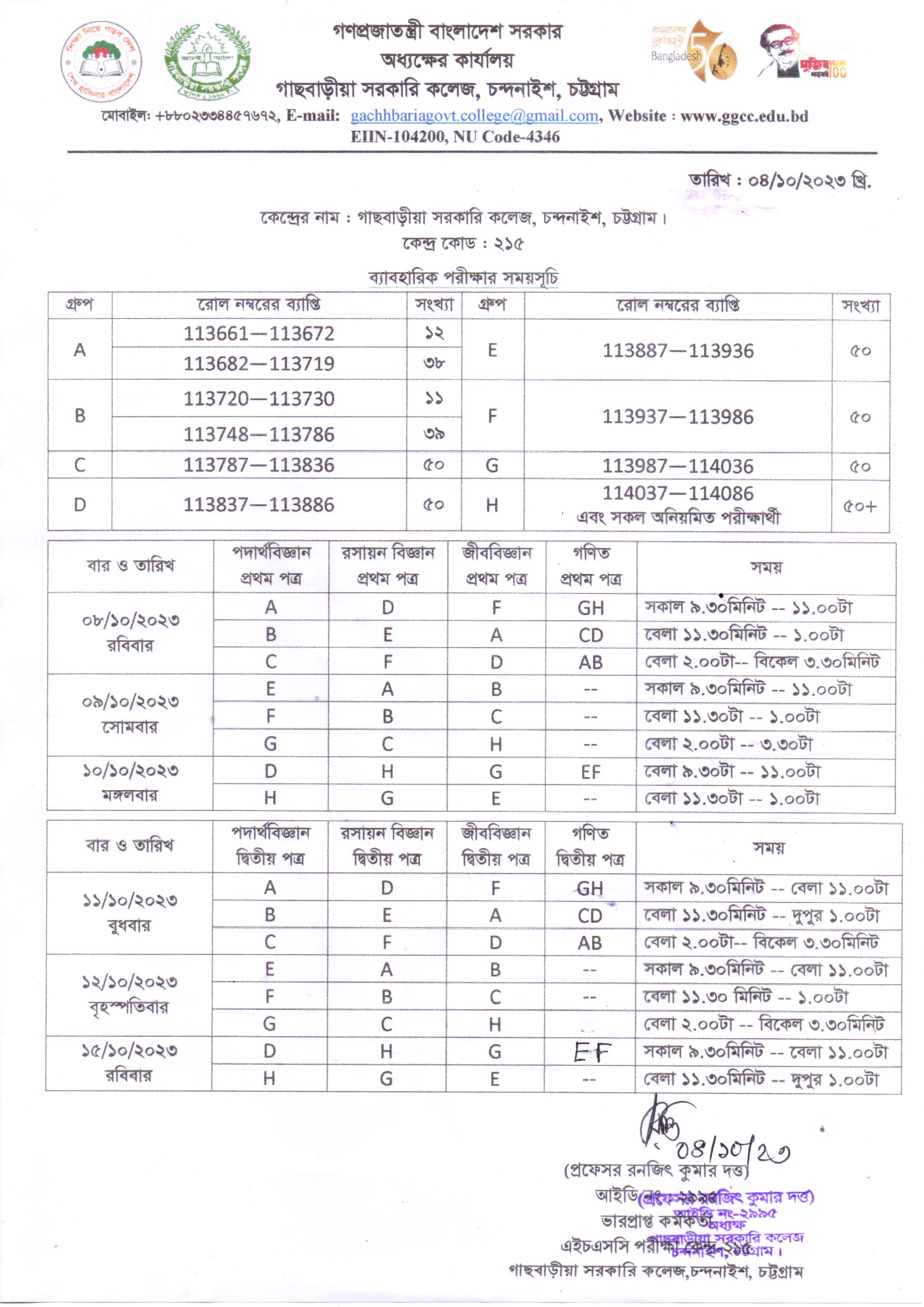 উচ্চ মাধ্যমিক সার্টিফিকেট পরীক্ষা ২০২৩ এর ব্যবহারিক পরীক্ষার সময়সূচি