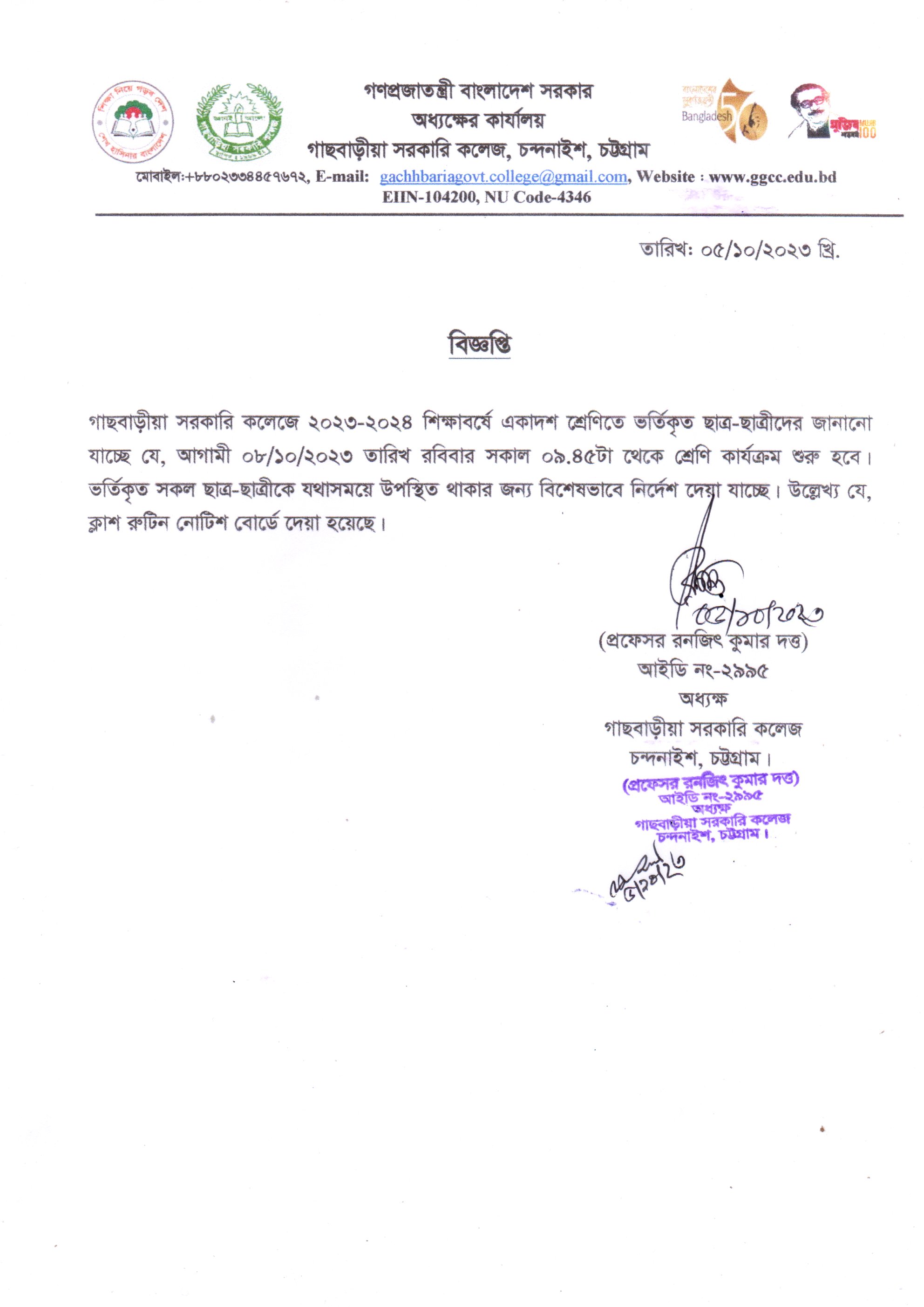 ২০২৩-২৪ শিক্ষাবর্ষে একাদশ শ্রেণিতে ভর্তিকৃত ছাত্র-ছাত্রীদের শ্রেণি-কার্যক্রম শুরু হওয়া প্রসঙ্গে।