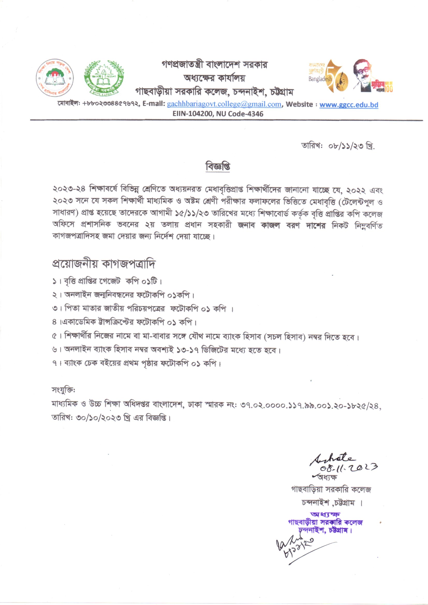 গাছবাড়ীয়া সরকারি কলেজ, চন্দনাইশ, চট্টগ্রাম।