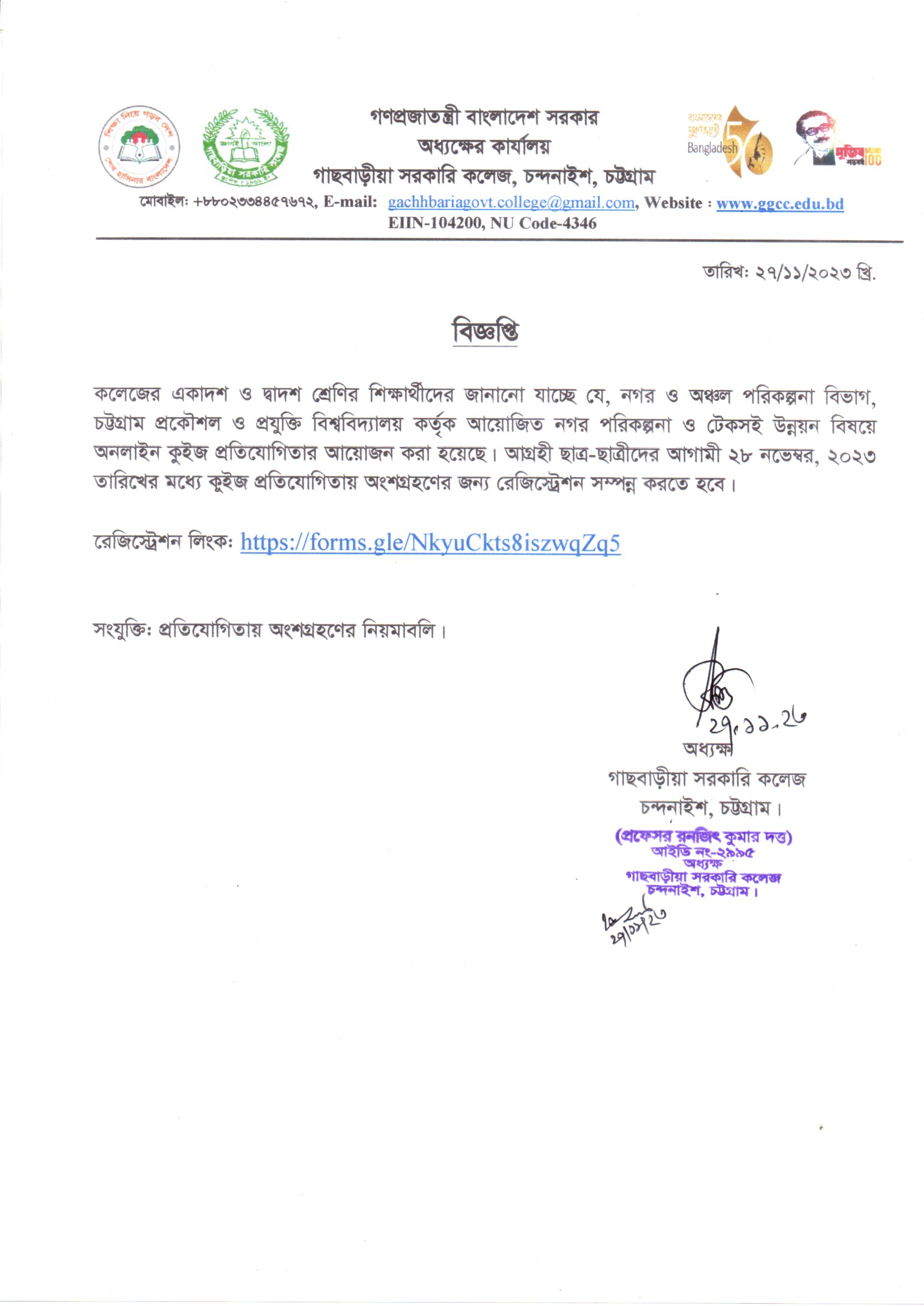 গাছবাড়ীয়া সরকারি কলেজ, চন্দনাইশ, চট্টগ্রাম।