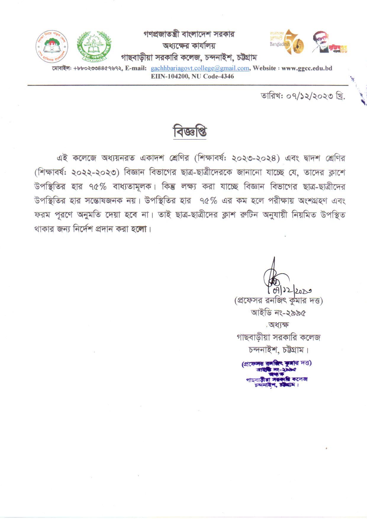 গাছবাড়ীয়া সরকারি কলেজ, চন্দনাইশ, চট্টগ্রাম।