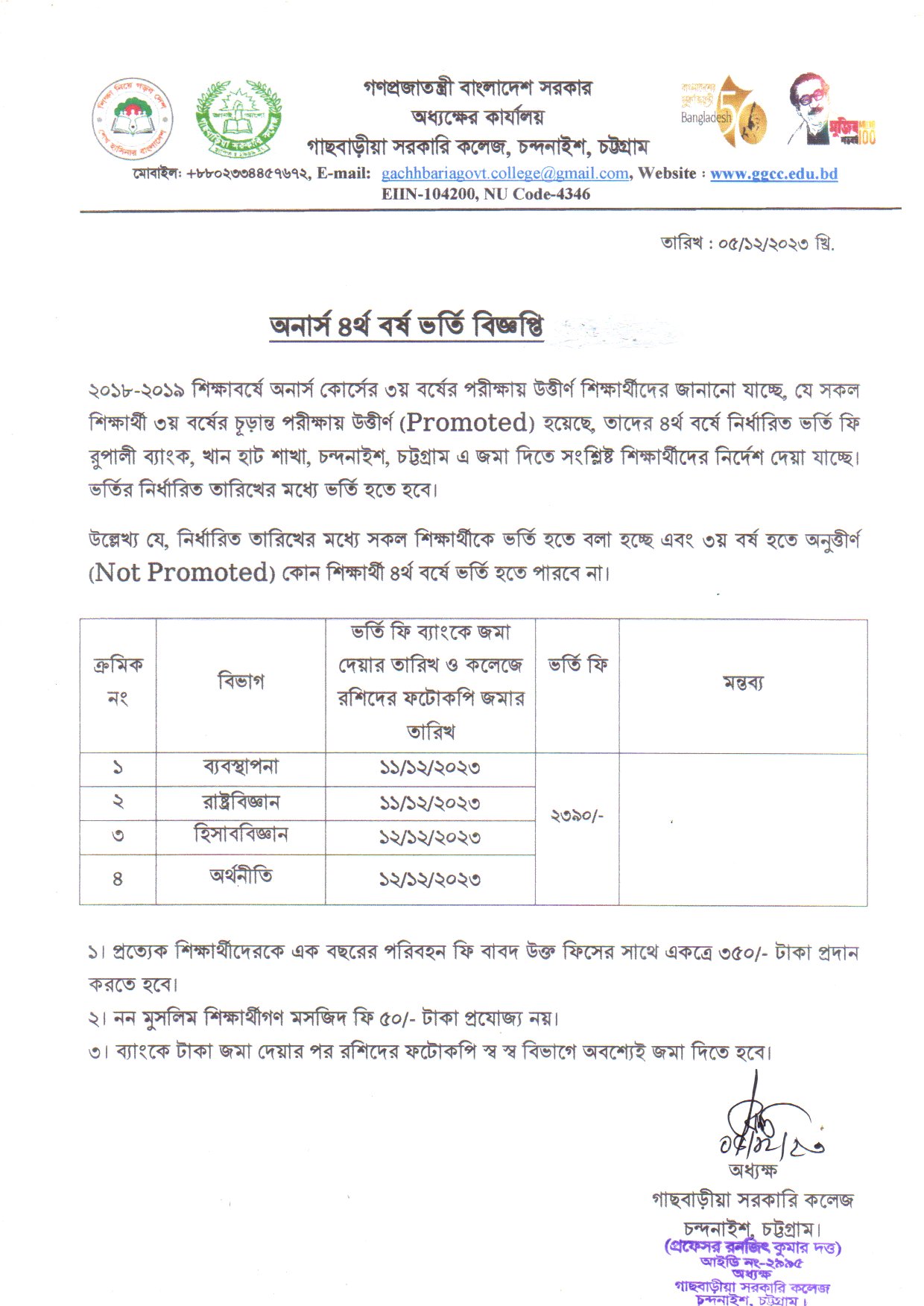 অনার্স ৪র্থ বর্ষ ভর্তি বিজ্ঞপ্তি