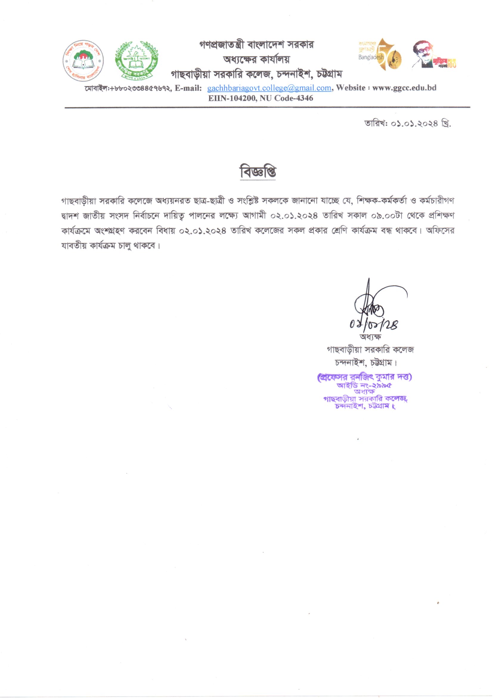 গাছবাড়ীয়া সরকারি কলেজ, চন্দনাইশ, চট্টগ্রাম।