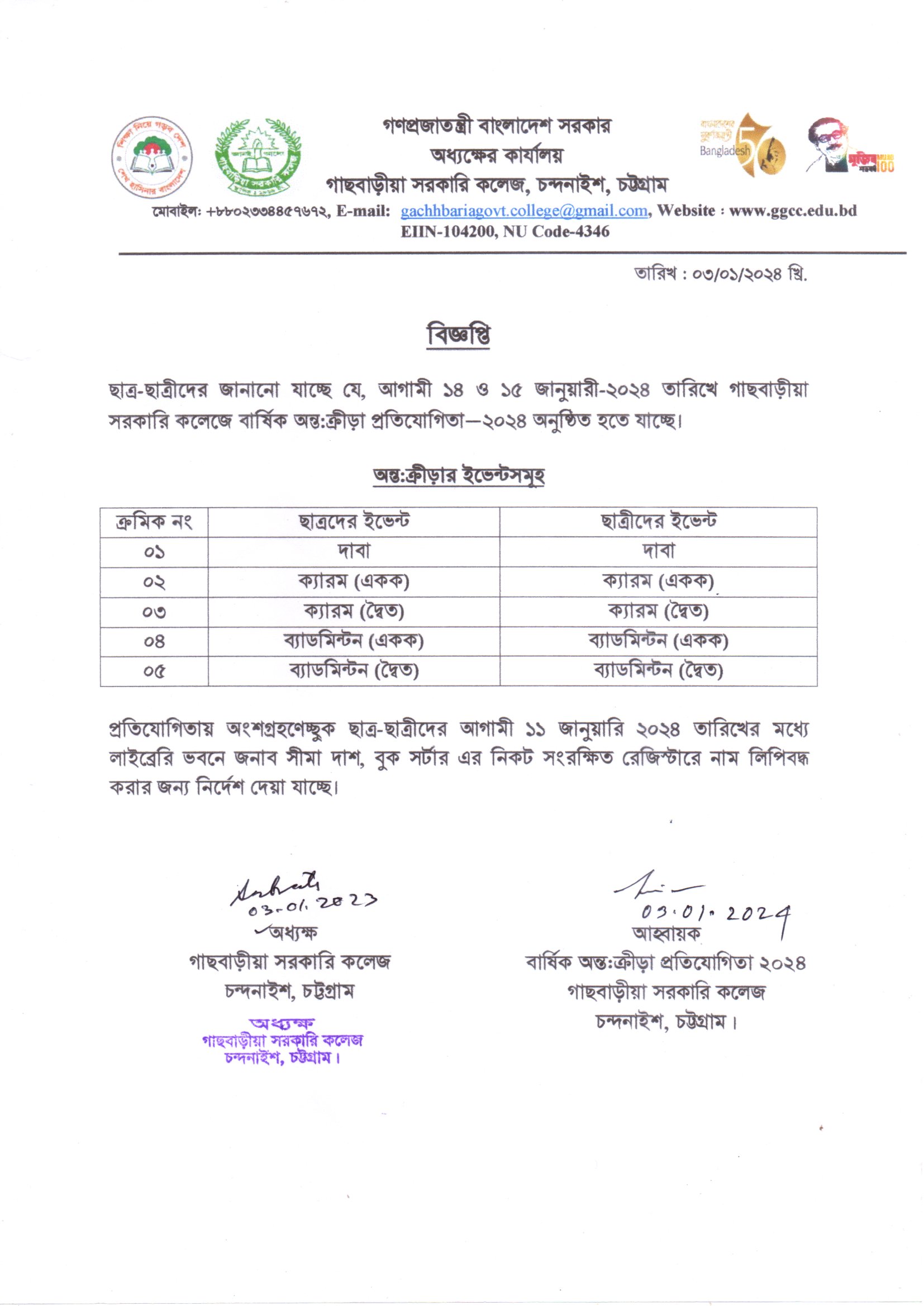 গাছবাড়ীয়া সরকারি কলেজ, চন্দনাইশ, চট্টগ্রাম।