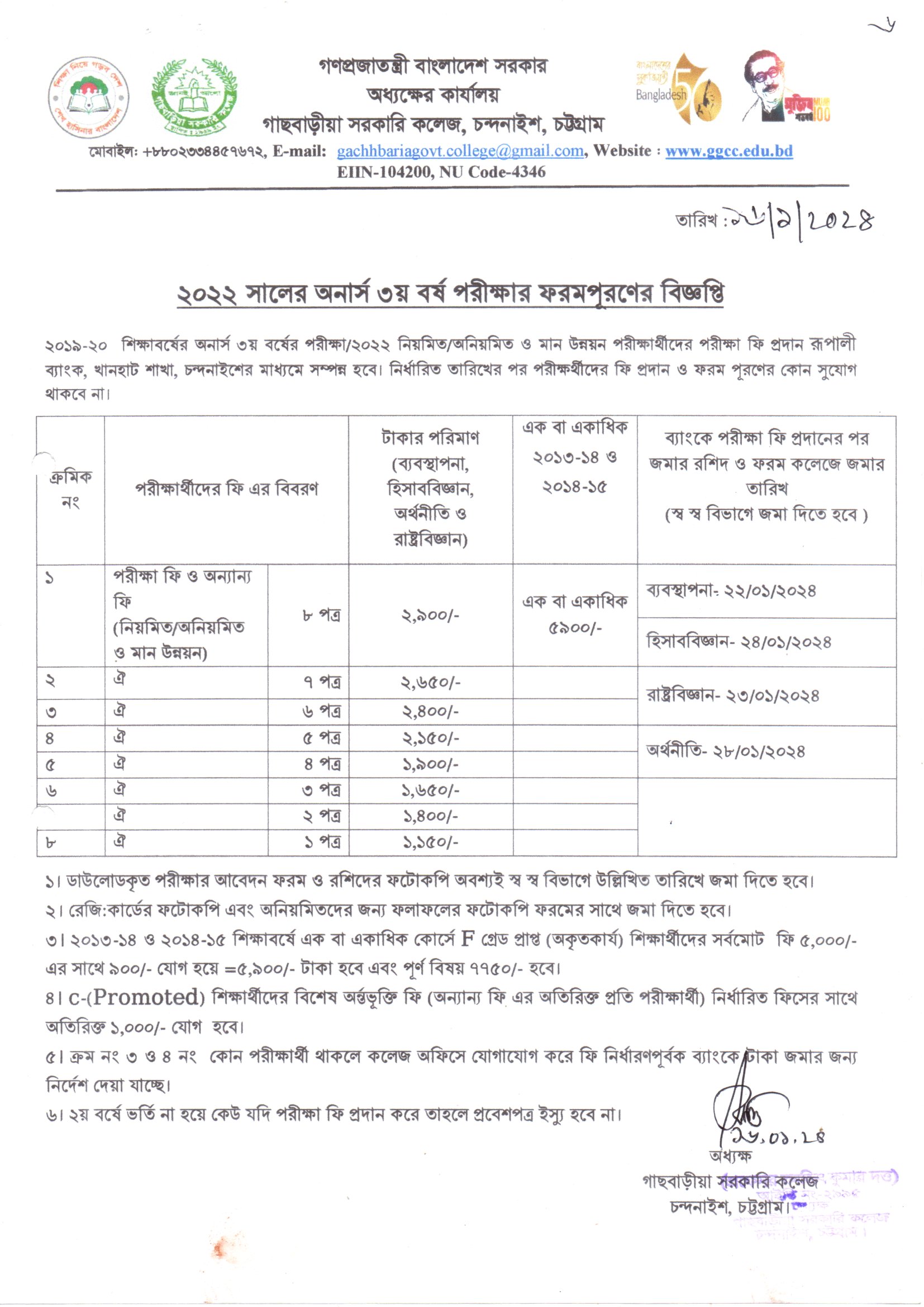 ২০২২ সালের অনার্স ৩য় বর্ষ পরীক্ষার ফরমপূরণের বিজ্ঞপ্তি