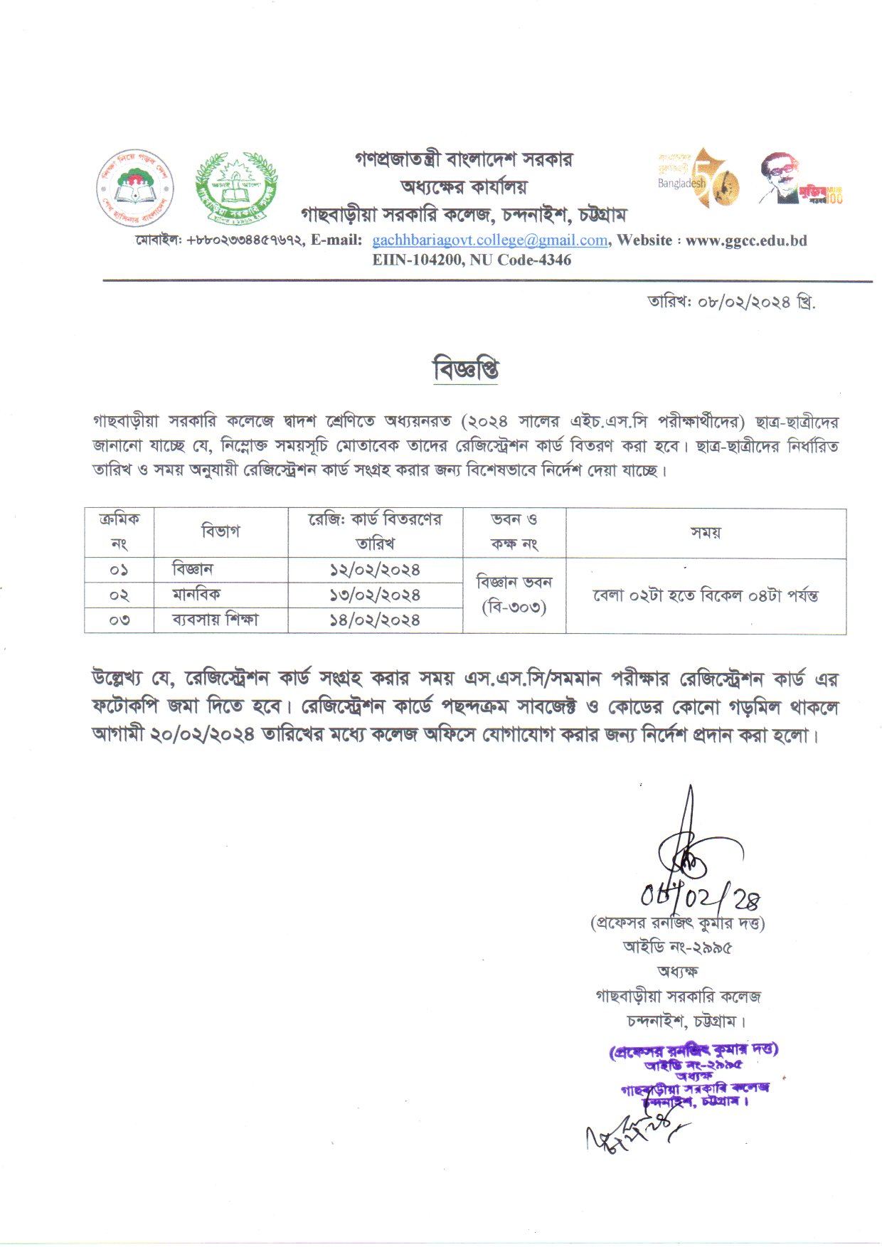 রেজিস্ট্রেশন কার্ড বিতরণ সংক্রান্ত