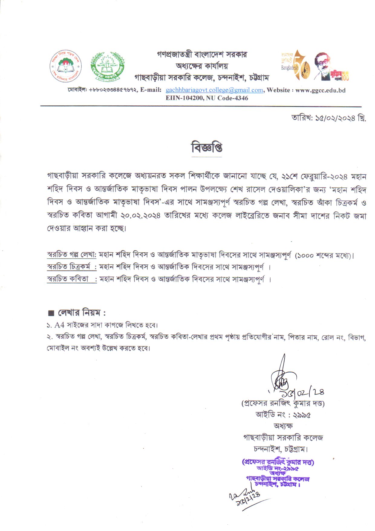 ২১শে ফেব্রুয়ারি ২০২৪ উপলক্ষ্যে স্বরচিত গল্প, স্বরচিত কবিতা, স্বরচিত চিত্রকর্ম প্রতিযোগীতার বিজ্ঞপ্তি