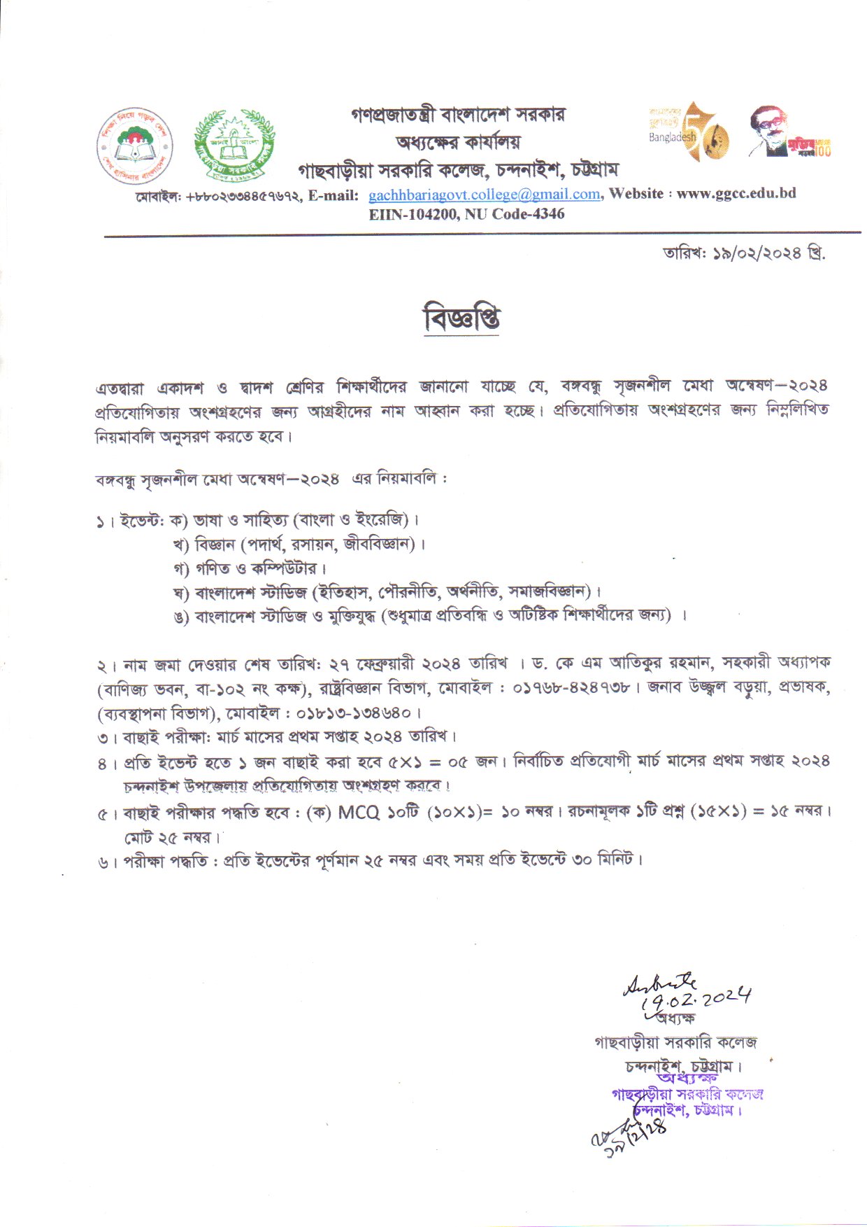 বঙ্গবন্ধু সৃজনশীল মেধা অন্বেষণ প্রতিযোগীতা-২০২৪