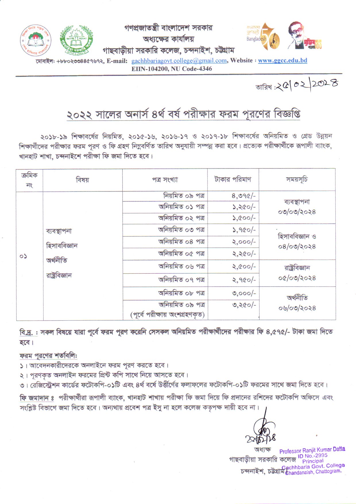 ২০২২ সালের অনার্স ৪র্থ বর্ষ পরীক্ষার ফরম পূরণের বিজ্ঞপ্তি