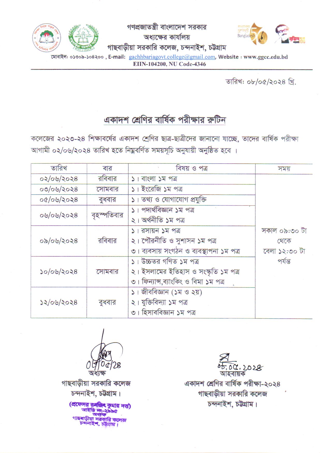 একাদশ শ্রেণির বার্ষিক পরীক্ষার রুটিন