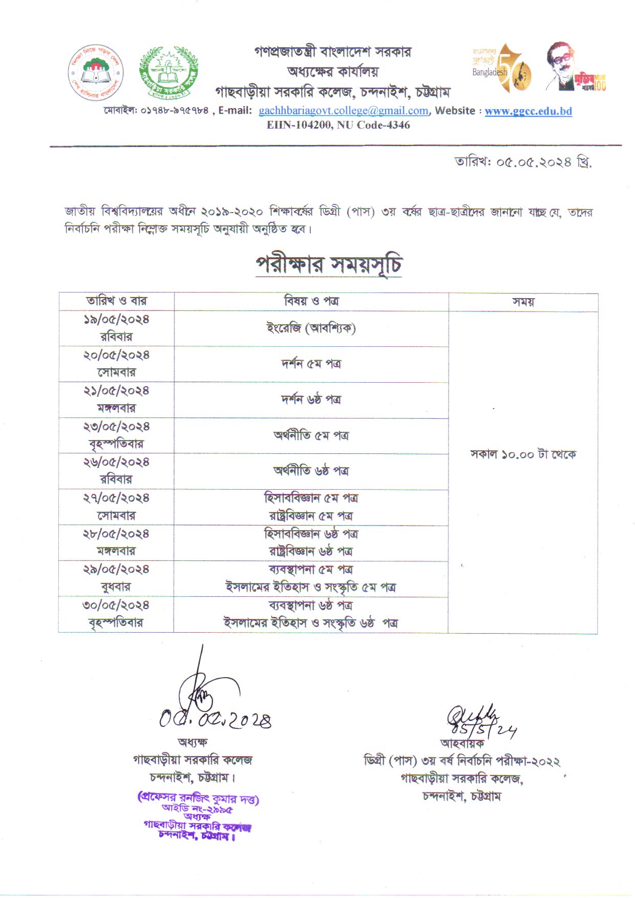 ডিগ্রী(পাস) ৩য় বর্ষ নির্বাচনী পরীক্ষার রুটিন