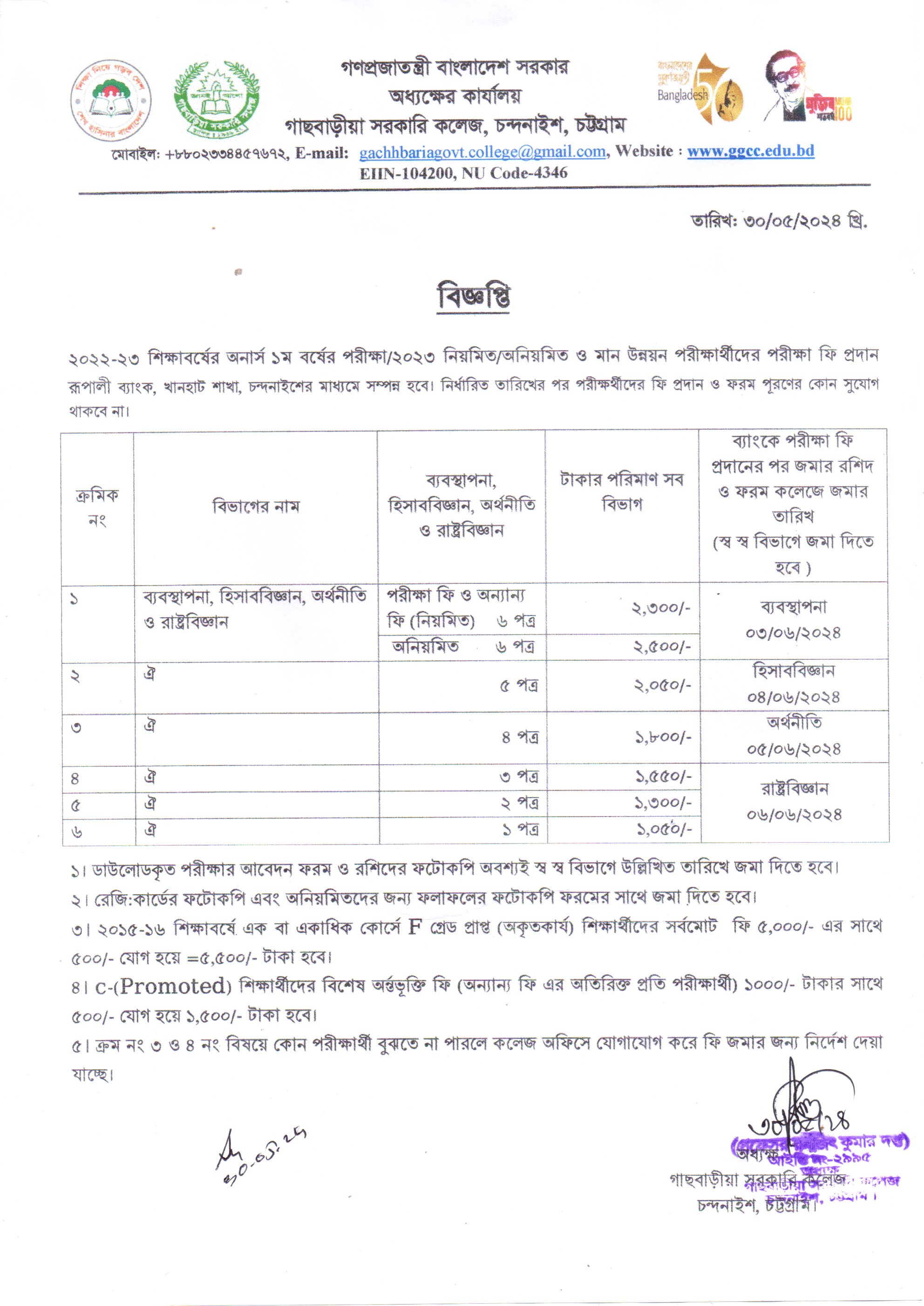 ২০২৩ সালের অনার্স ১ম বর্ষ পরীক্ষার ফরম পূরণের বিজ্ঞপ্তি