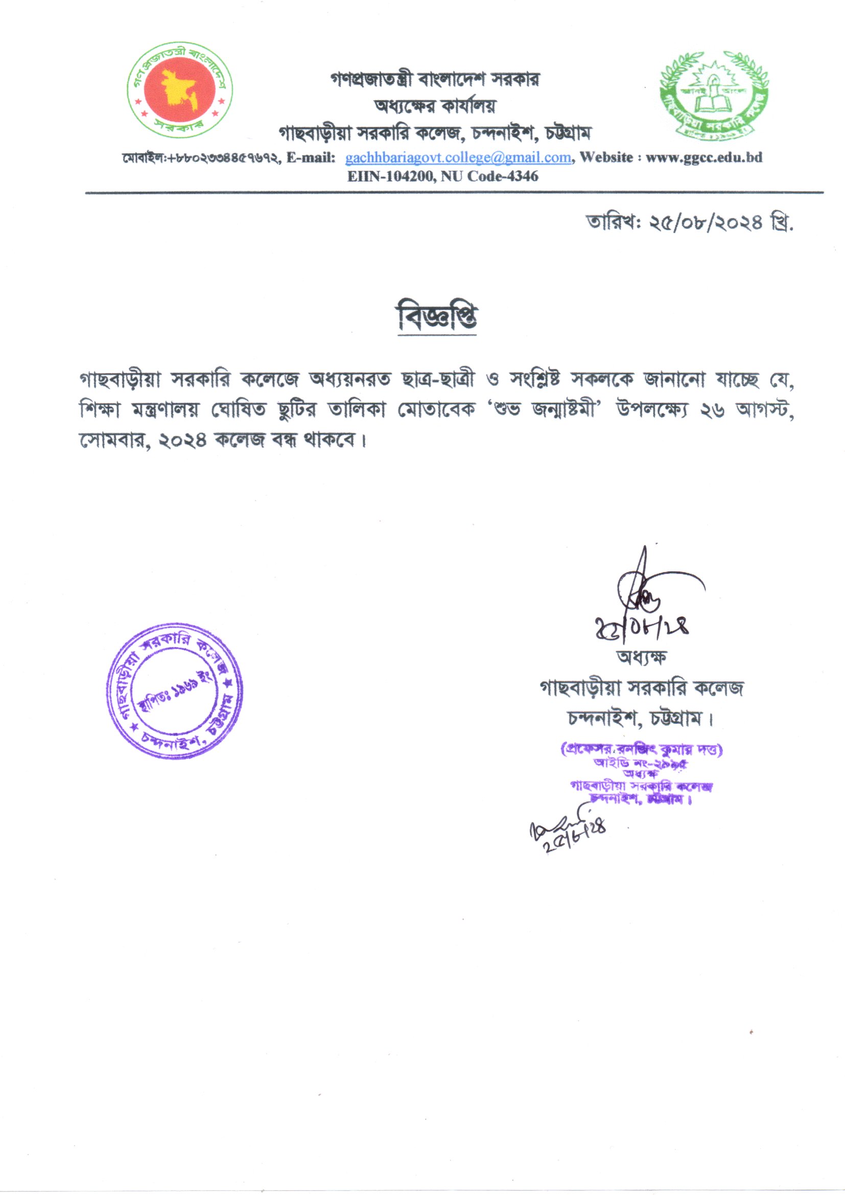 গাছবাড়ীয়া সরকারি কলেজ, চন্দনাইশ, চট্টগ্রাম।
