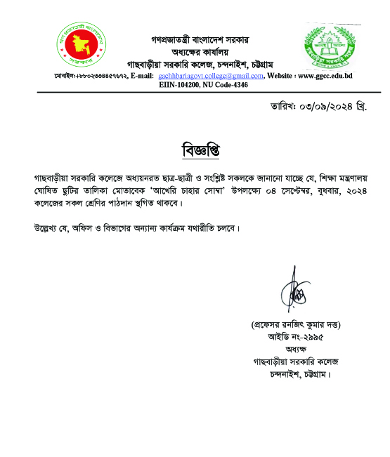 গাছবাড়ীয়া সরকারি কলেজ, চন্দনাইশ, চট্টগ্রাম।