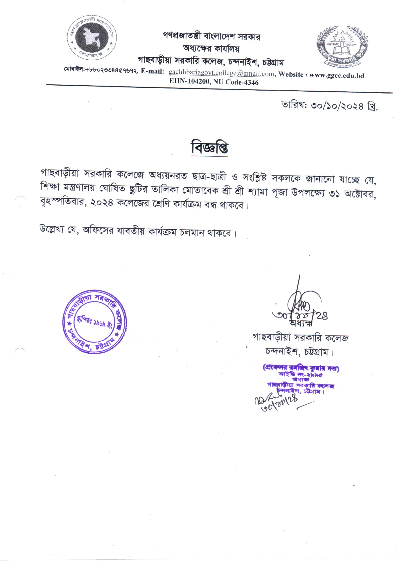 গাছবাড়ীয়া সরকারি কলেজ, চন্দনাইশ, চট্টগ্রাম।