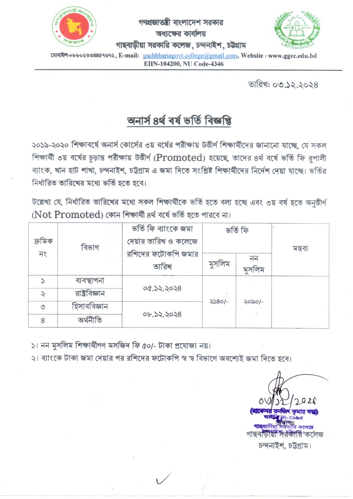 অনার্স ৪র্থ বর্ষ ভর্তি বিজ্ঞপ্তি