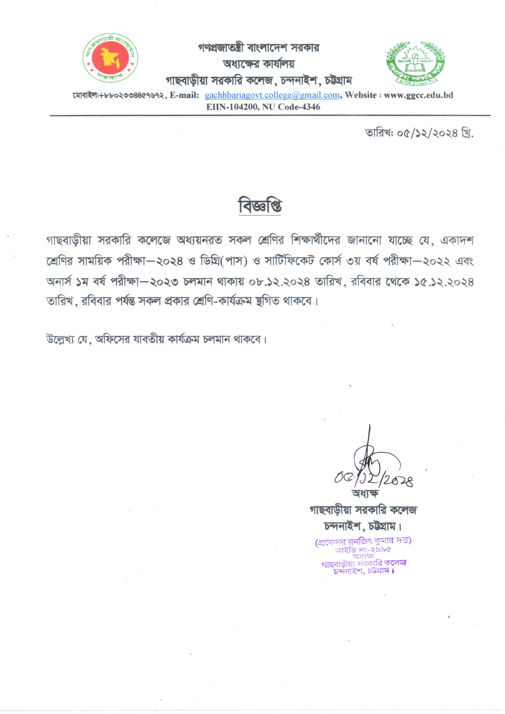গাছবাড়ীয়া সরকারি কলেজ, চন্দনাইশ, চট্টগ্রাম।