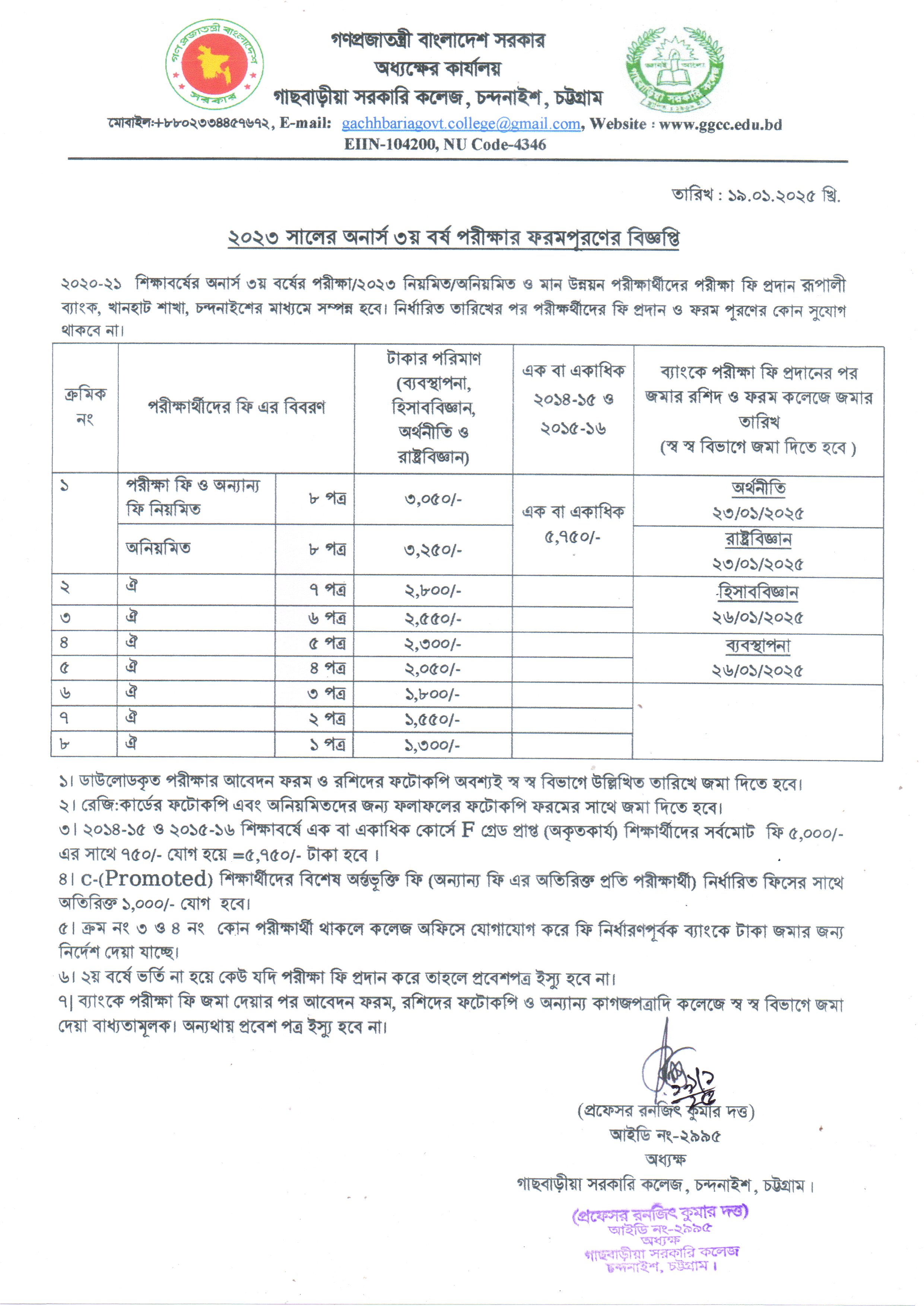 ২০২৩ সালের অনার্স ৩য় বর্ষ পরীক্ষার ফরম পূরণের বিজ্ঞপ্তি