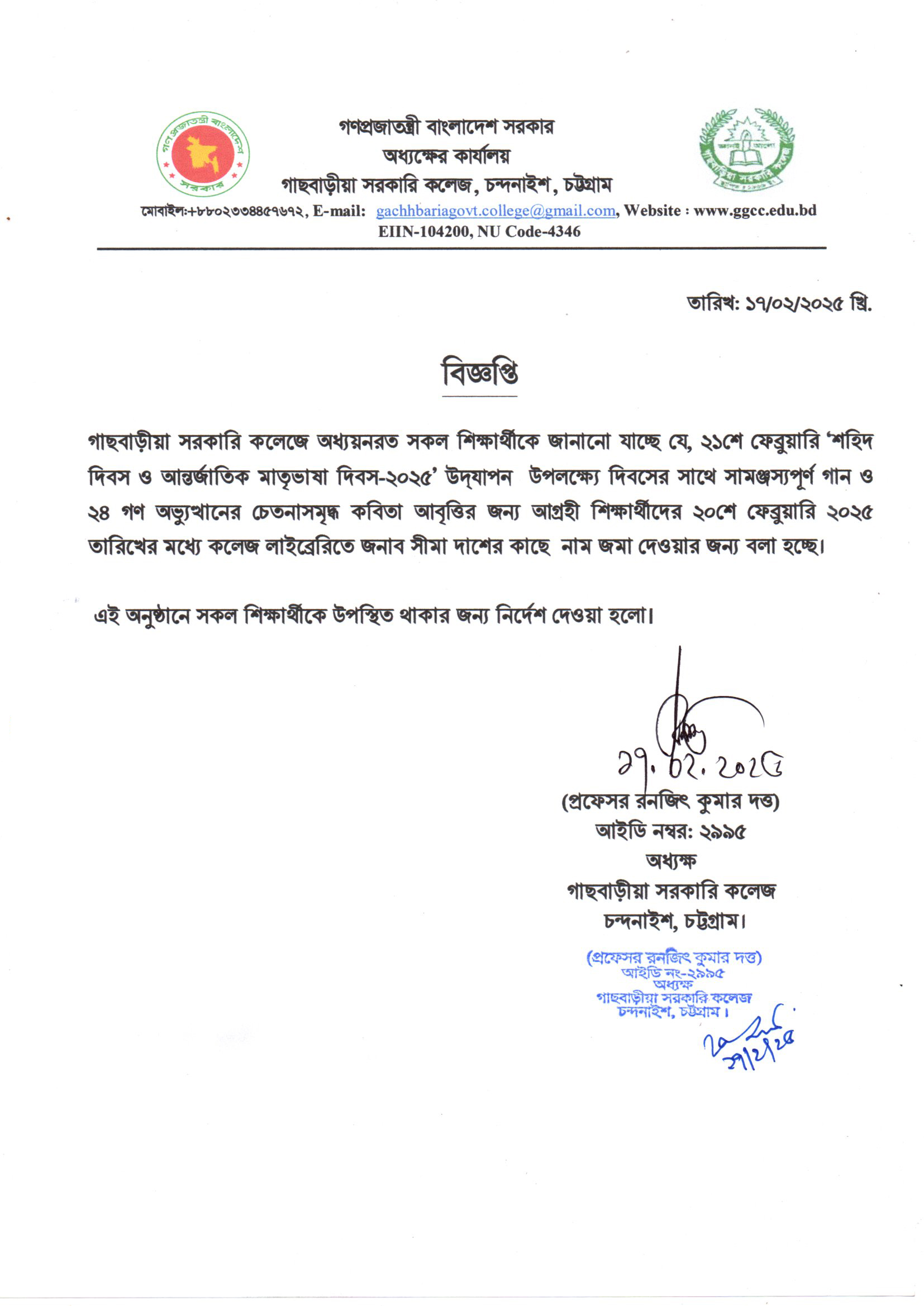 গাছবাড়ীয়া সরকারি কলেজ, চন্দনাইশ, চট্টগ্রাম।