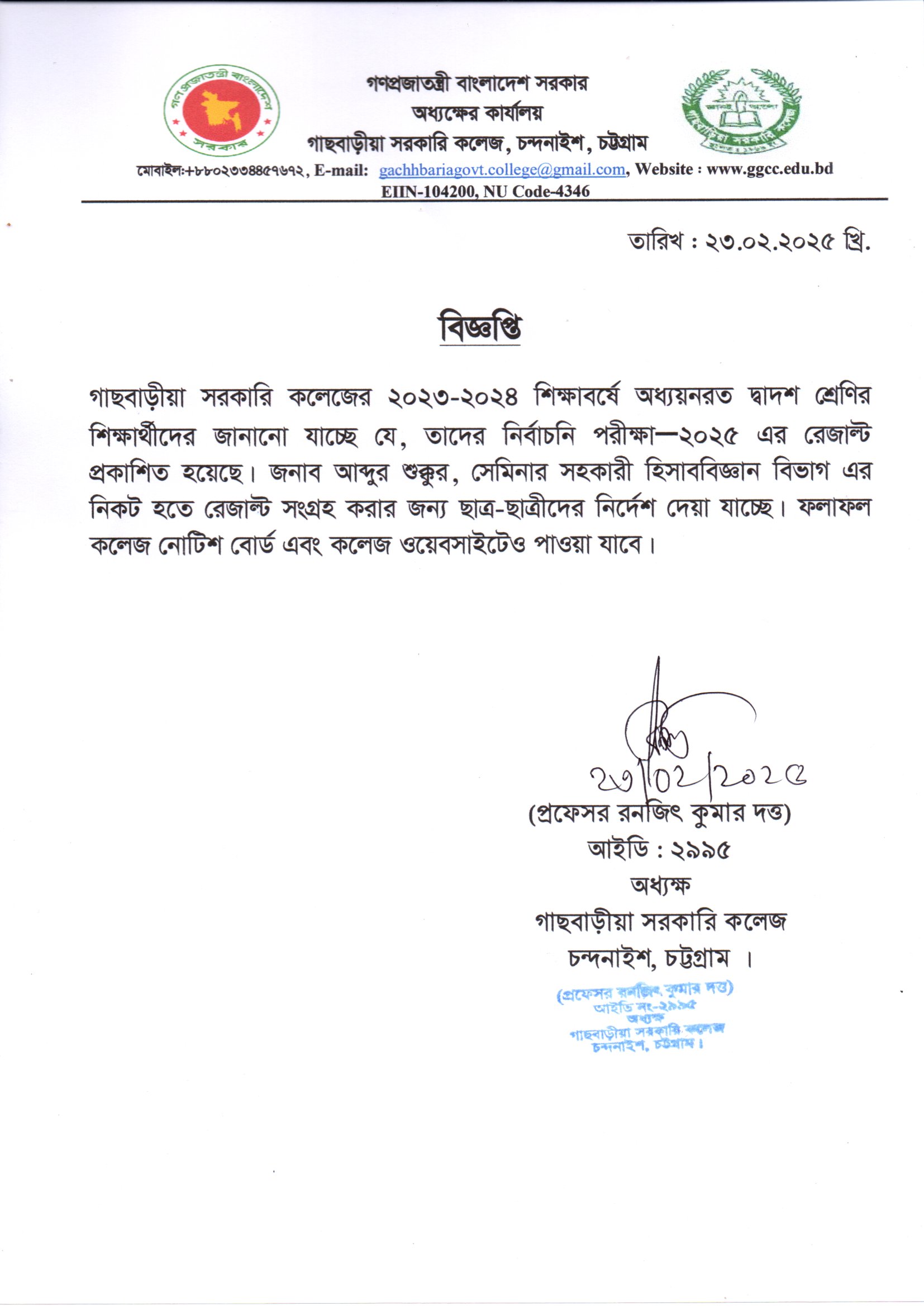গাছবাড়ীয়া সরকারি কলেজ, চন্দনাইশ, চট্টগ্রাম।