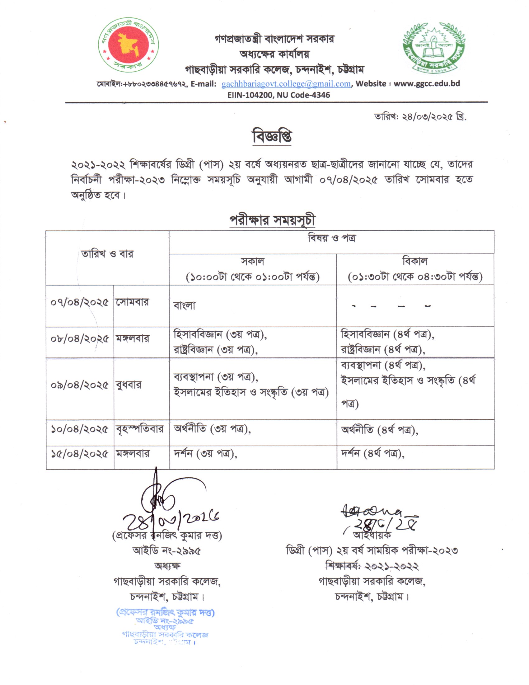 ২০২১-২০২২ শিক্ষাবর্ষের ডিগ্রী (পাস) ২য় বর্ষ পরীক্ষা-২০২৩ এর রুটিন