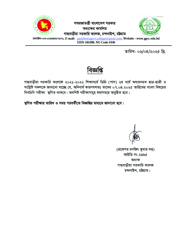 ২০২১-২০২২ শিক্ষাবর্ষের ডিগ্রী (পাস) ২য় বর্ষ পরীক্ষার ০৭.০৪.২০২৫ তারিখের পরীক্ষা স্থগিত প্রসঙ্গে।