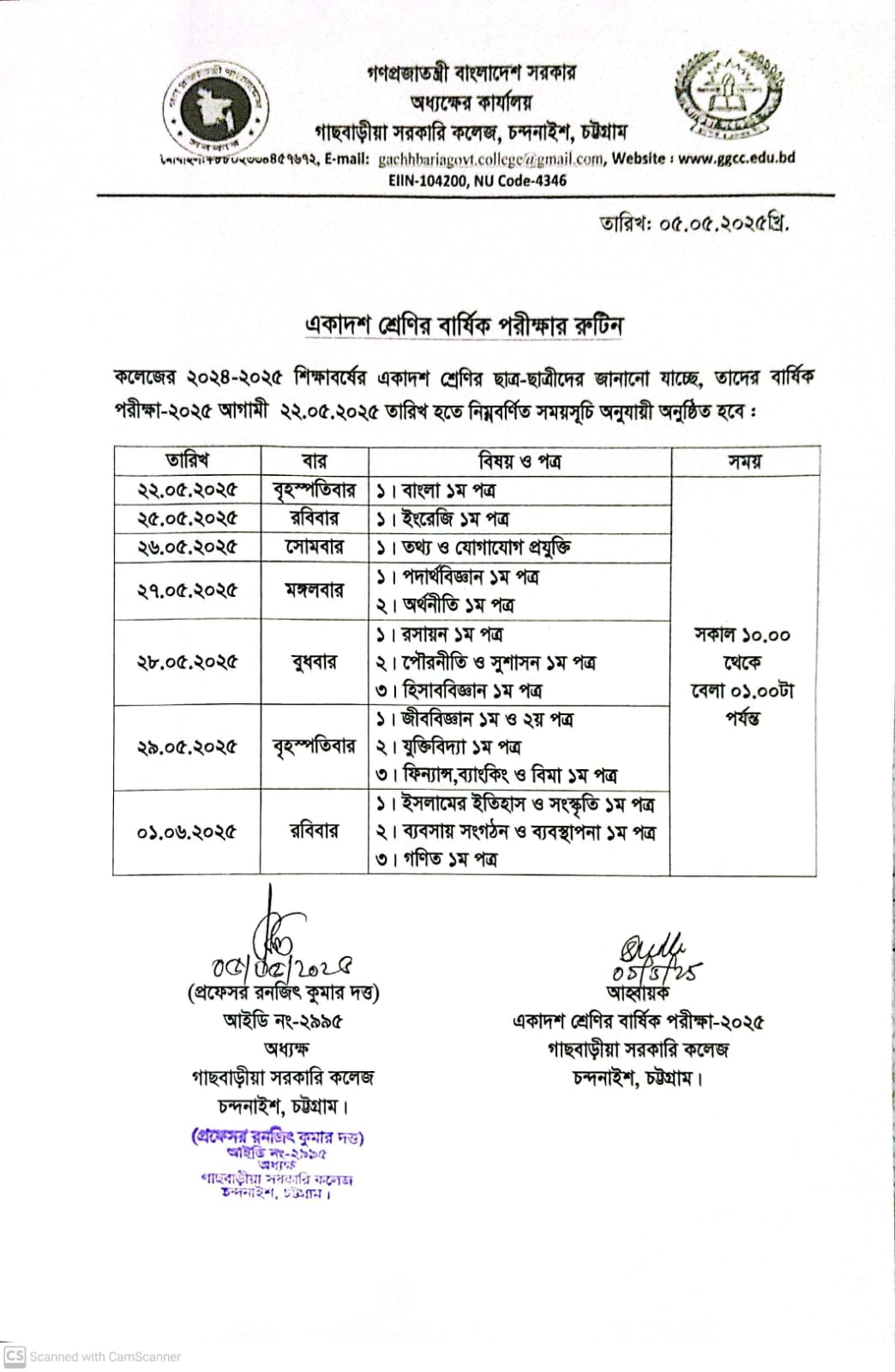 একাদশ বার্ষিক পরীক্ষা-২০২৫ এর রুটিন