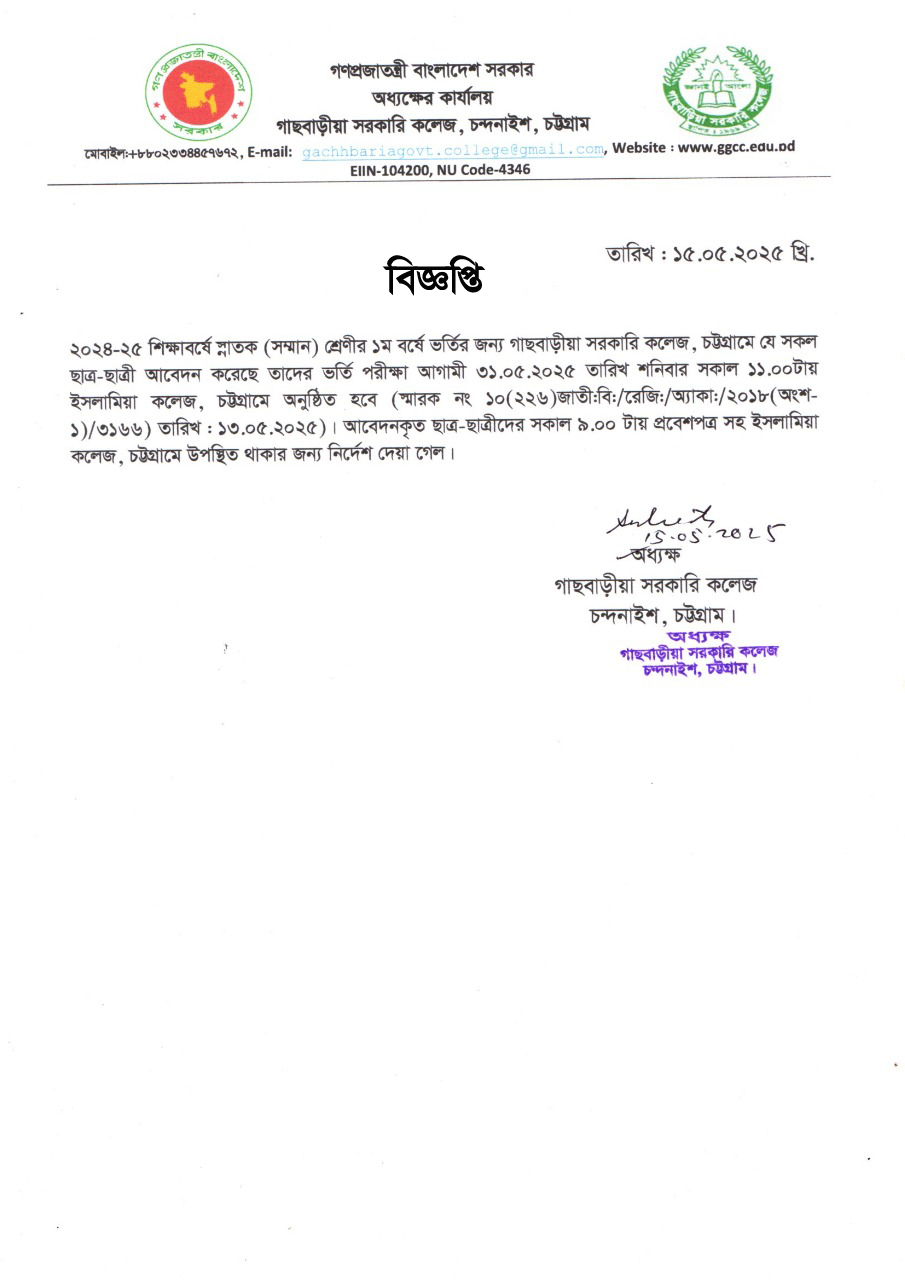 গাছবাড়ীয়া সরকারি কলেজ, চন্দনাইশ, চট্টগ্রাম।