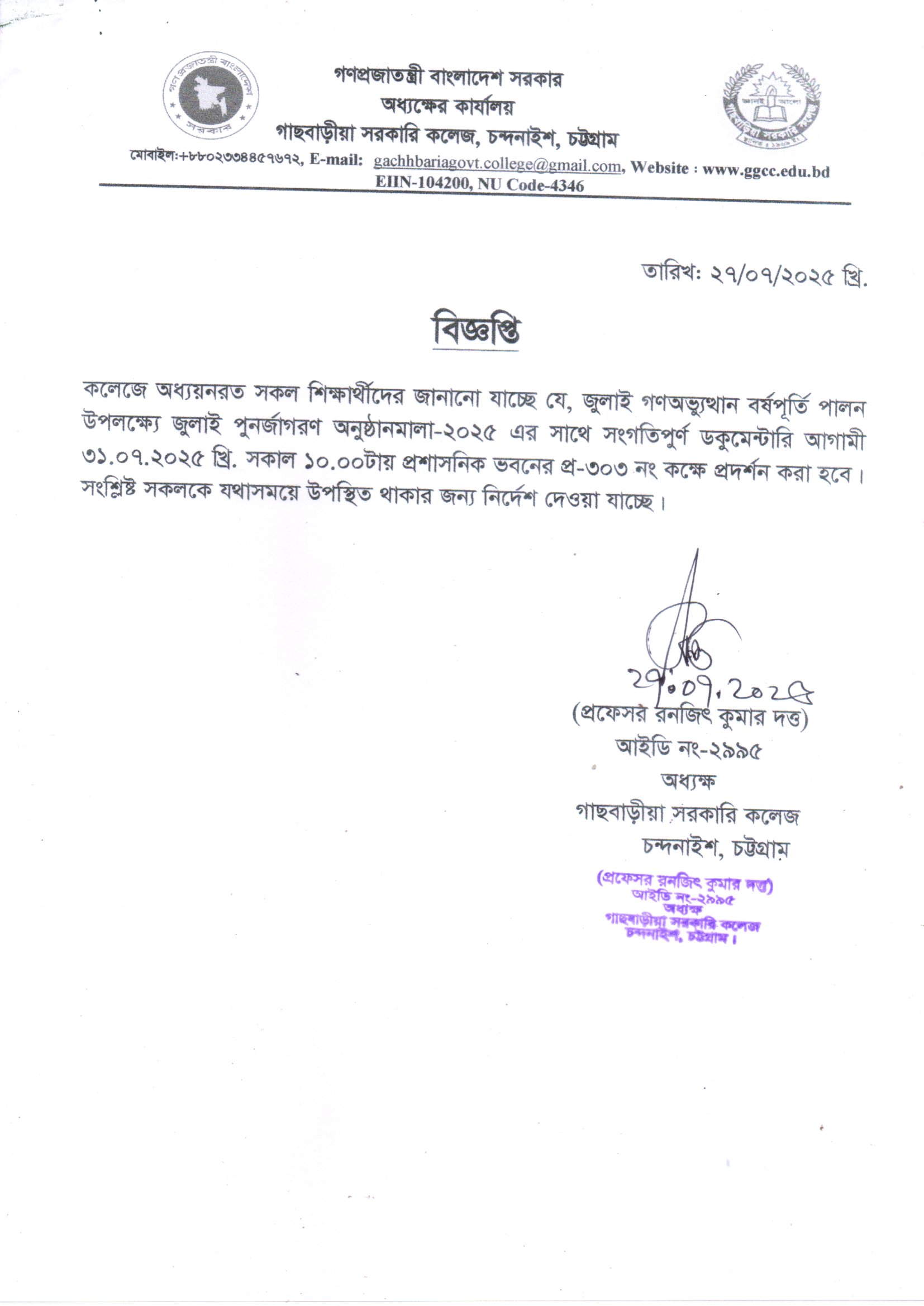 গাছবাড়ীয়া সরকারি কলেজ, চন্দনাইশ, চট্টগ্রাম।
