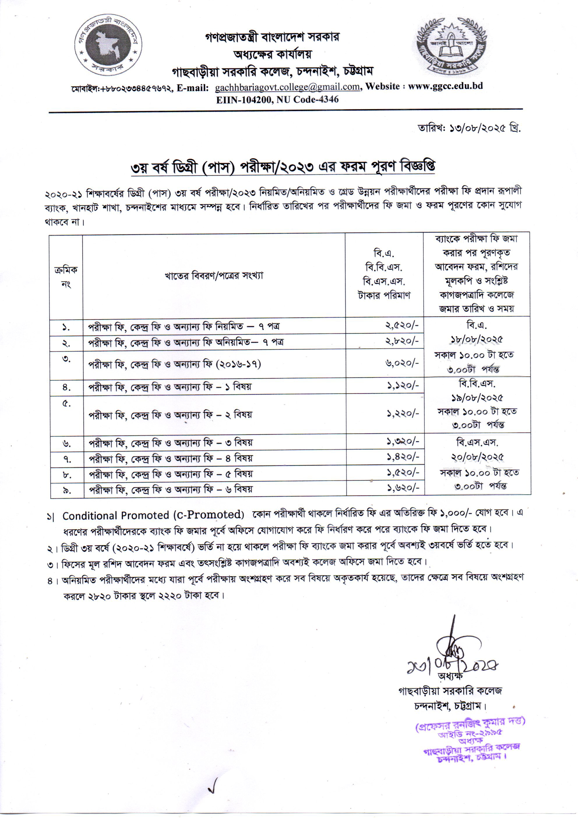 ডিগ্রি (পাস) ৩য় বর্ষ পরীক্ষা-২০২৩ এর ফরম পূরণের বিজ্ঞপ্তি