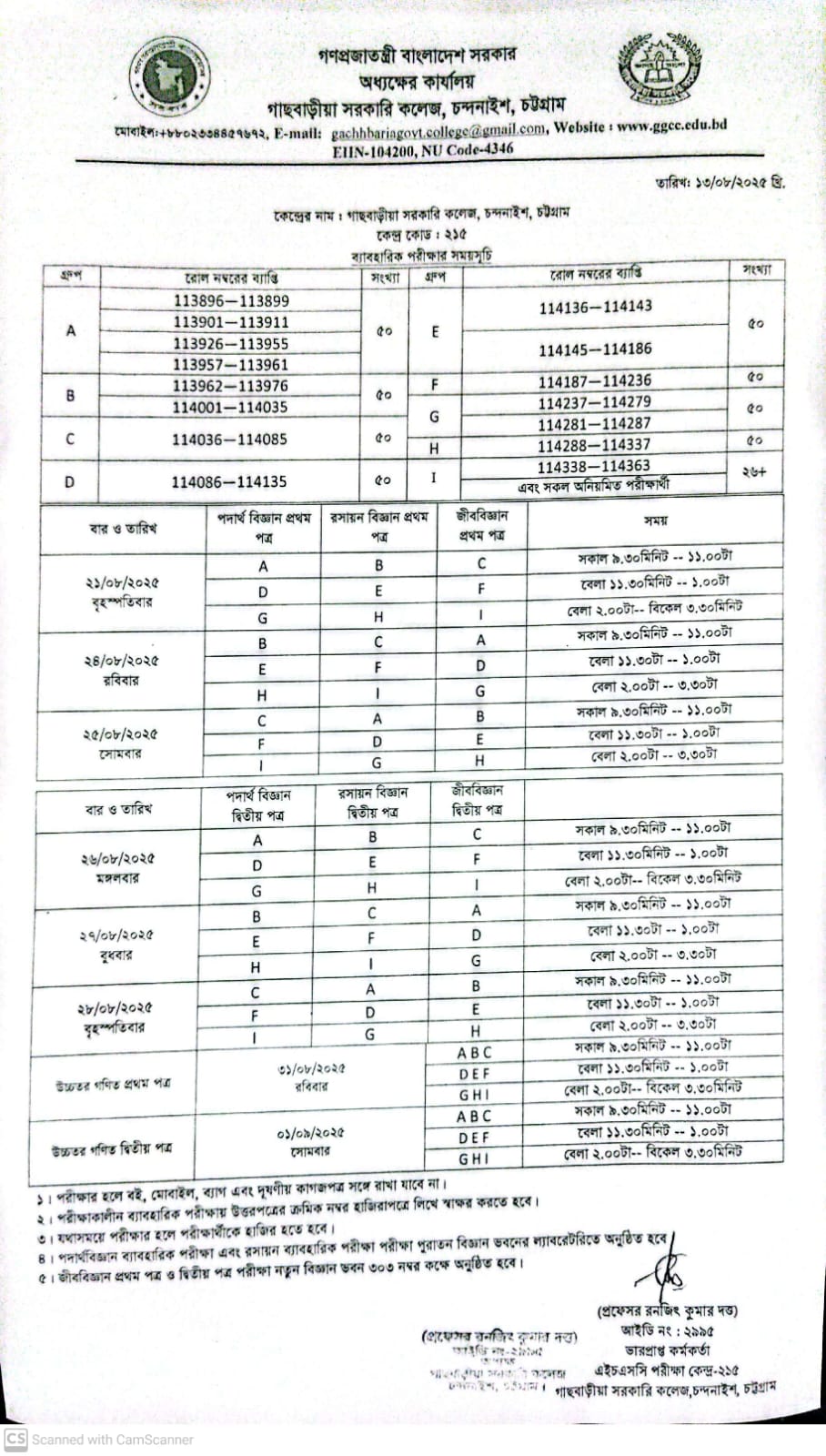 এইচএসসি পরীক্ষা-২০২৫ এর ব্যাবহারিক পরীক্ষার সময়সূচি