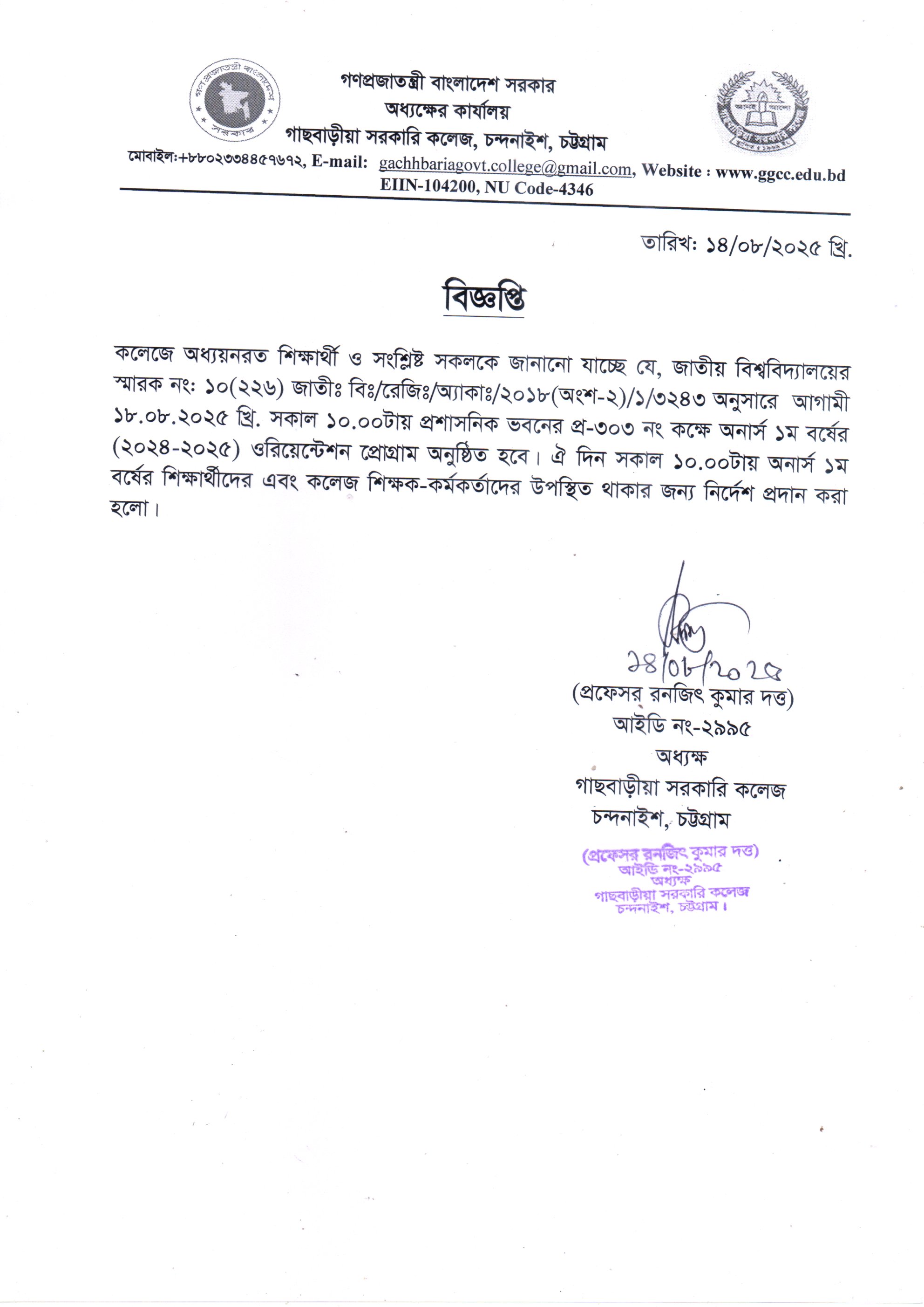 স্নাতক (সম্মান) ১ম বর্ষ ভর্তি (২০২৫-২০২৬)