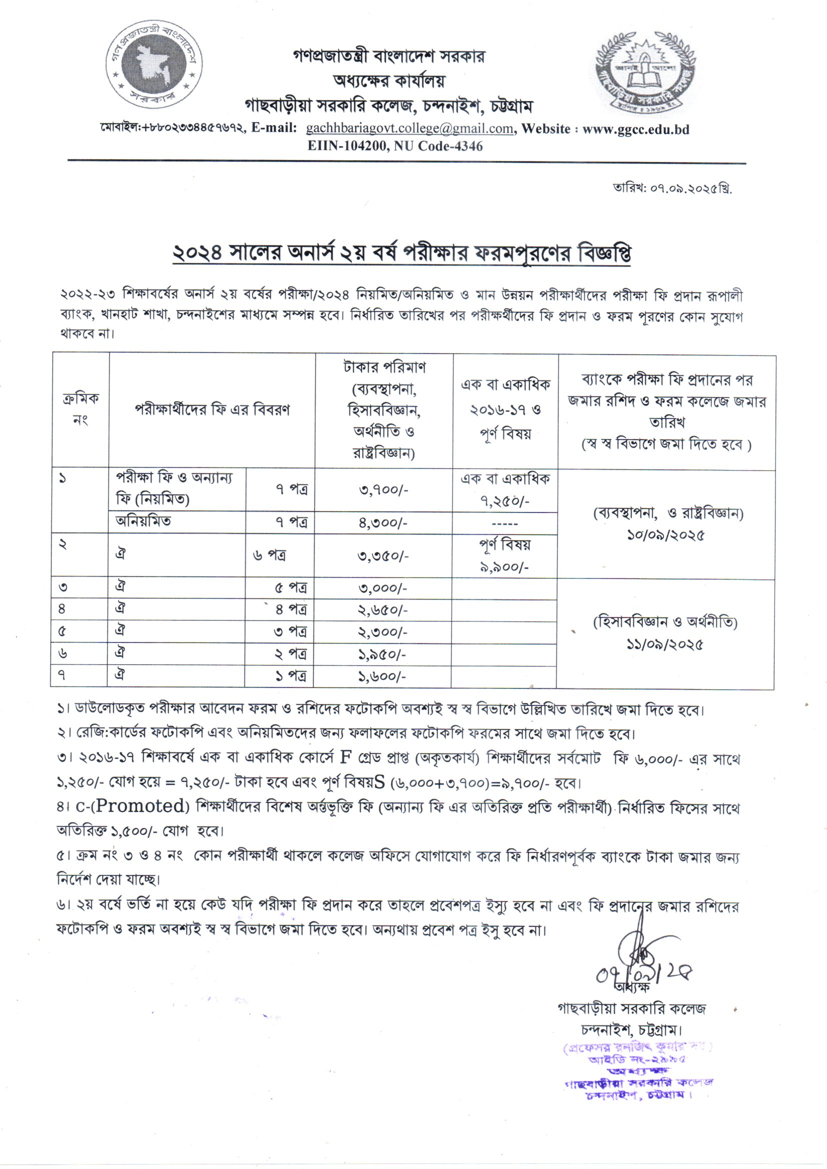 ২০২৪ সালের অনার্স ২য় বর্ষ পরীক্ষার ফরম পূরণের বিজ্ঞপ্তি