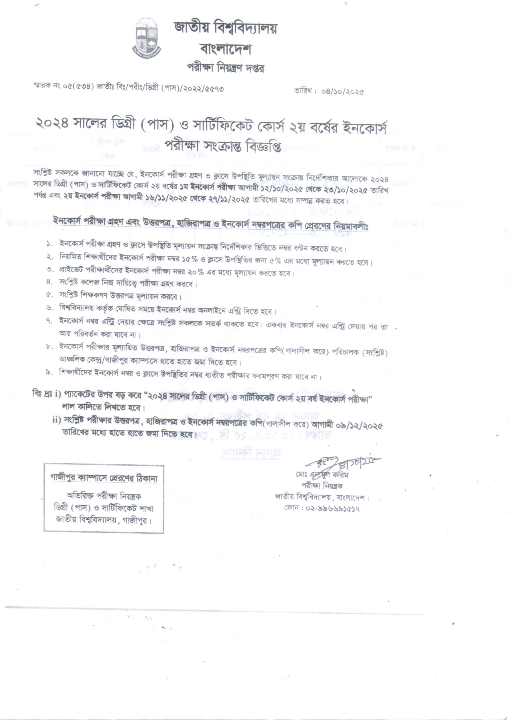 ডিগ্রী(পাস) ১ম বর্ষ পরীক্ষা-২০২৪ পরীক্ষার ফরম পূরণের বিজ্ঞপ্তি