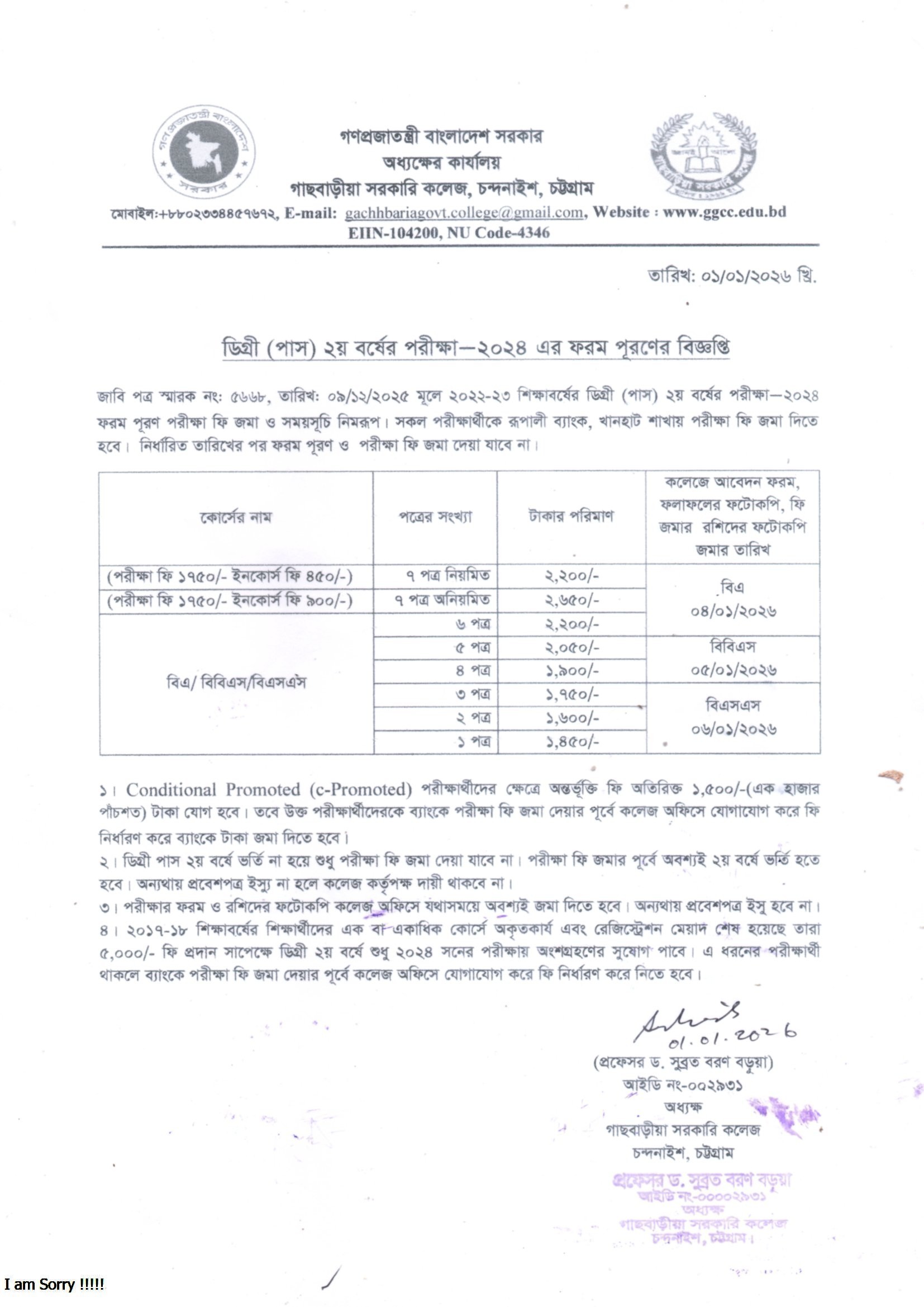 ২০২৪ সালের ডিগ্রী (পাস) ২য় বর্ষ পরীক্ষার ফরম পূরণের বিজ্ঞপ্তি