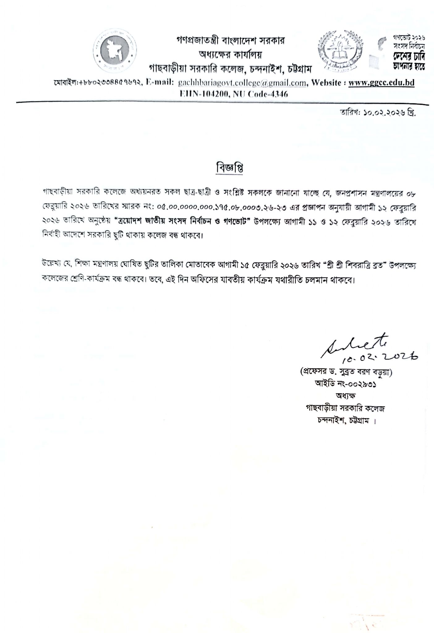 গাছবাড়ীয়া সরকারি কলেজ, চন্দনাইশ, চট্টগ্রাম।