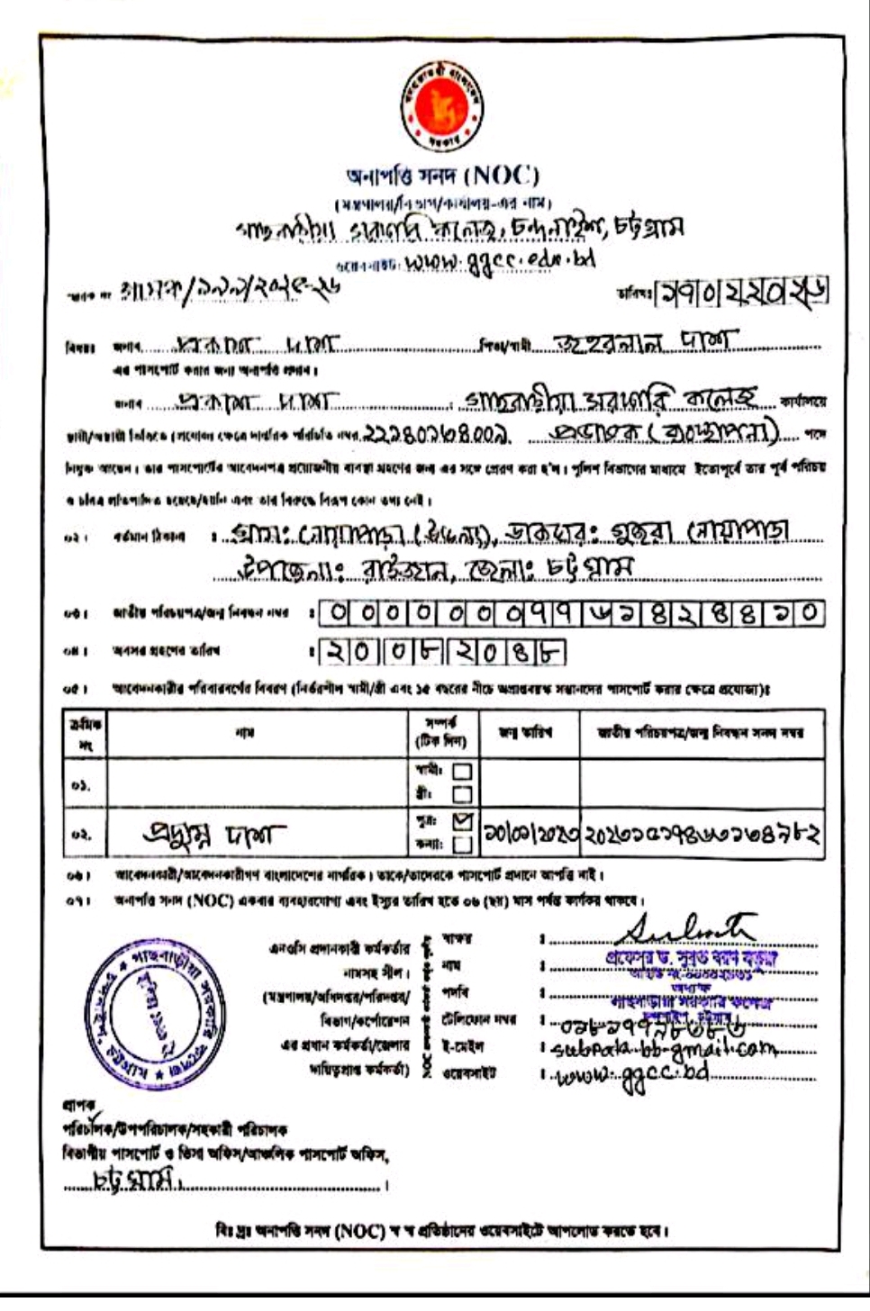 জনাব প্রকাশ দাশ, প্রভাষক (ব্যবস্থাপনা)- এর NOC