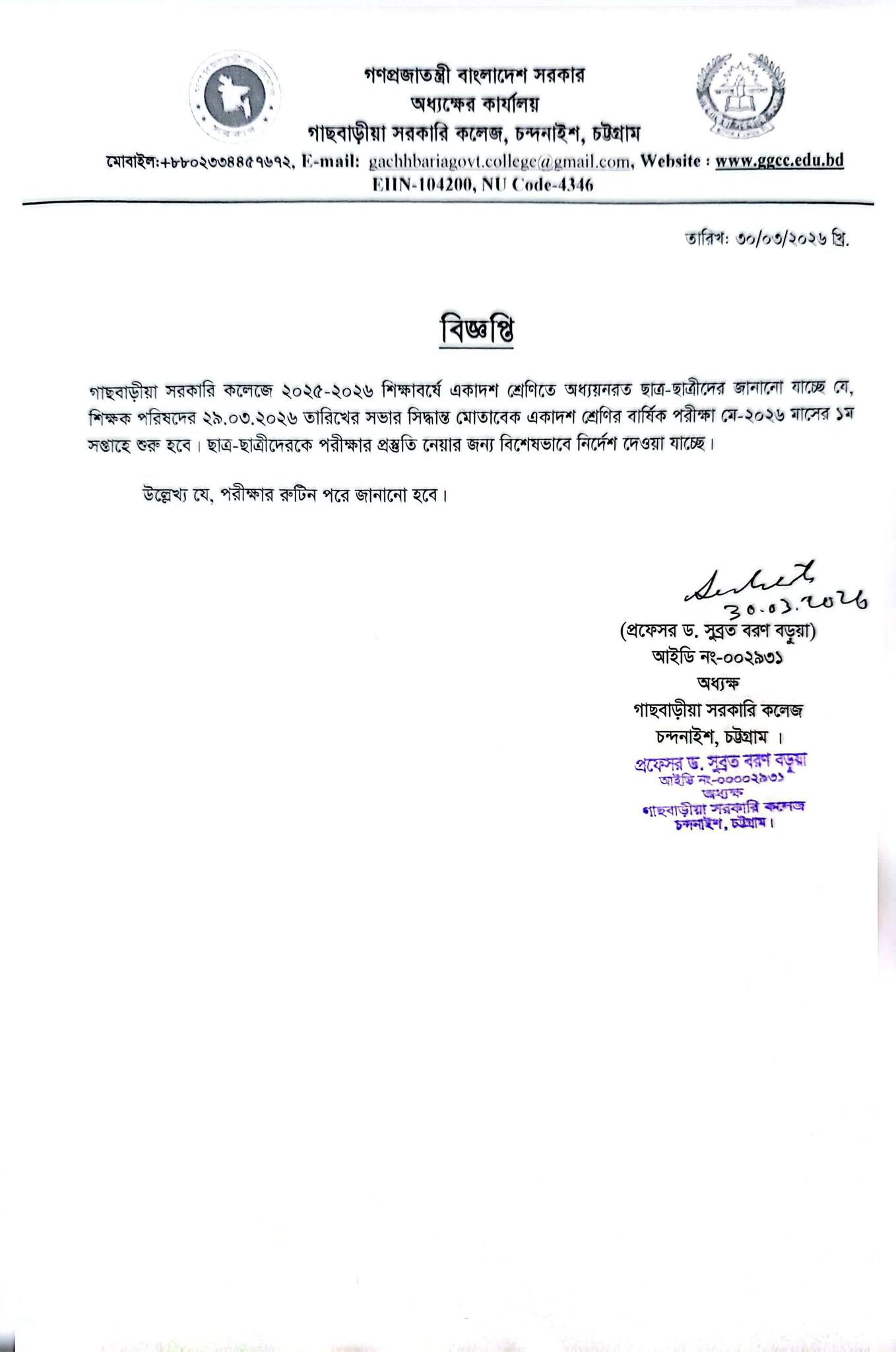 গাছবাড়ীয়া সরকারি কলেজ, চন্দনাইশ, চট্টগ্রাম।