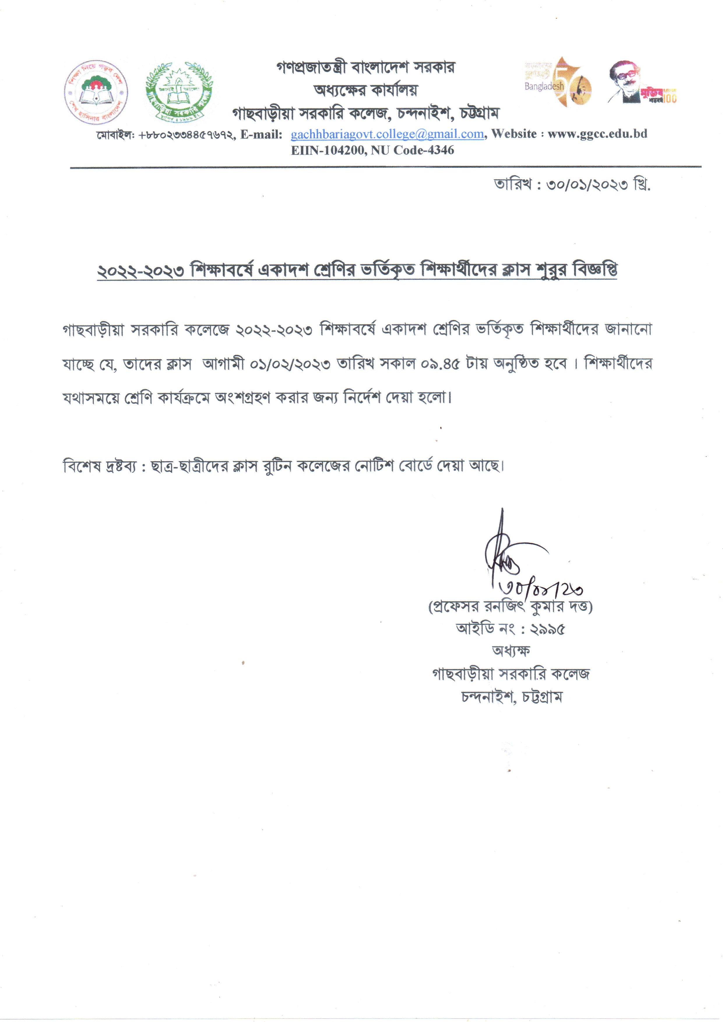 ২০২২-২০২৩ শিক্ষাবর্ষে একাদশ শ্রেণির ভর্তিকৃত শিক্ষার্থীদের ক্লাস শুরুর বিজ্ঞপ্তি