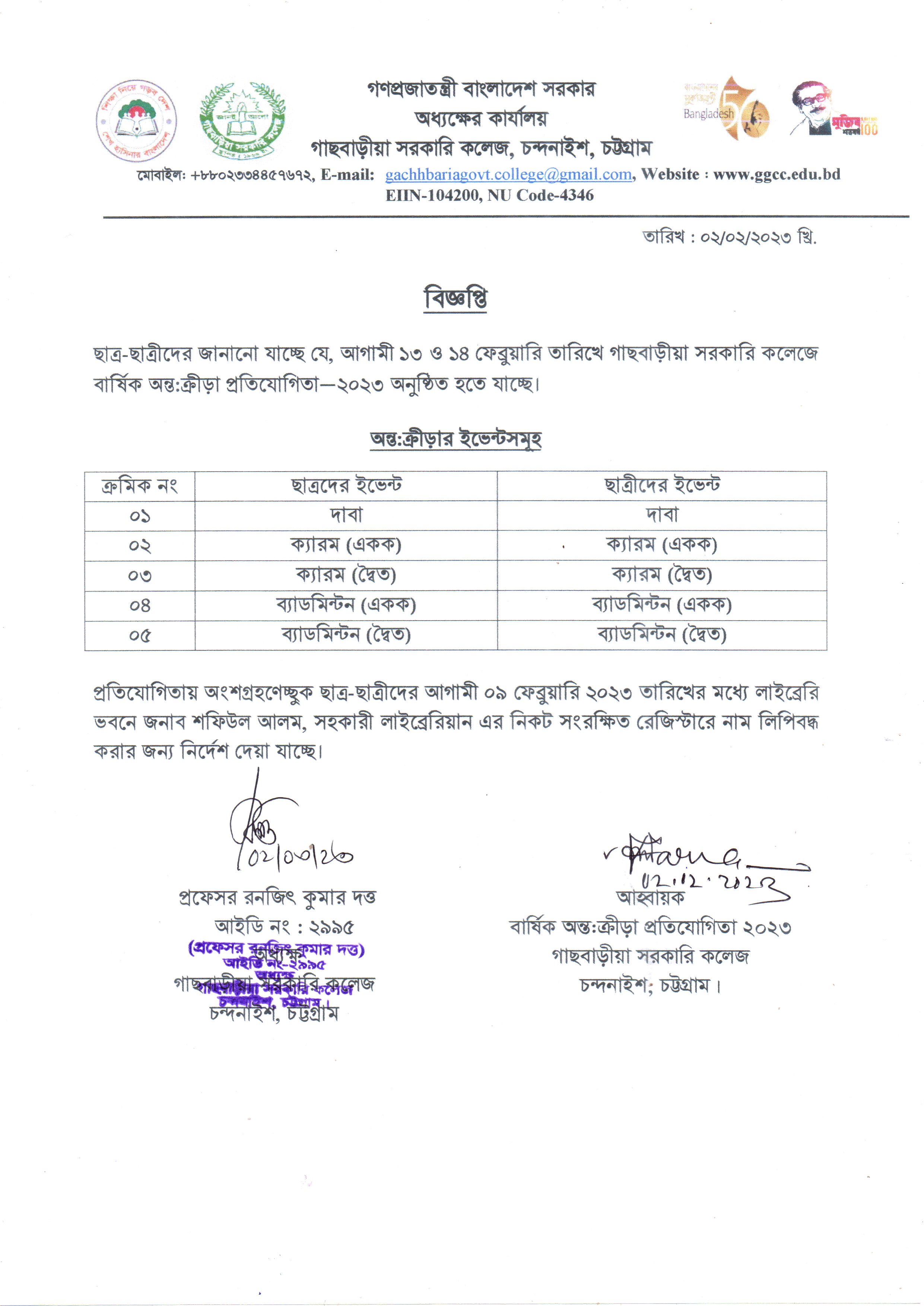 গাছবাড়ীয়া সরকারি কলেজ, চন্দনাইশ, চট্টগ্রাম।