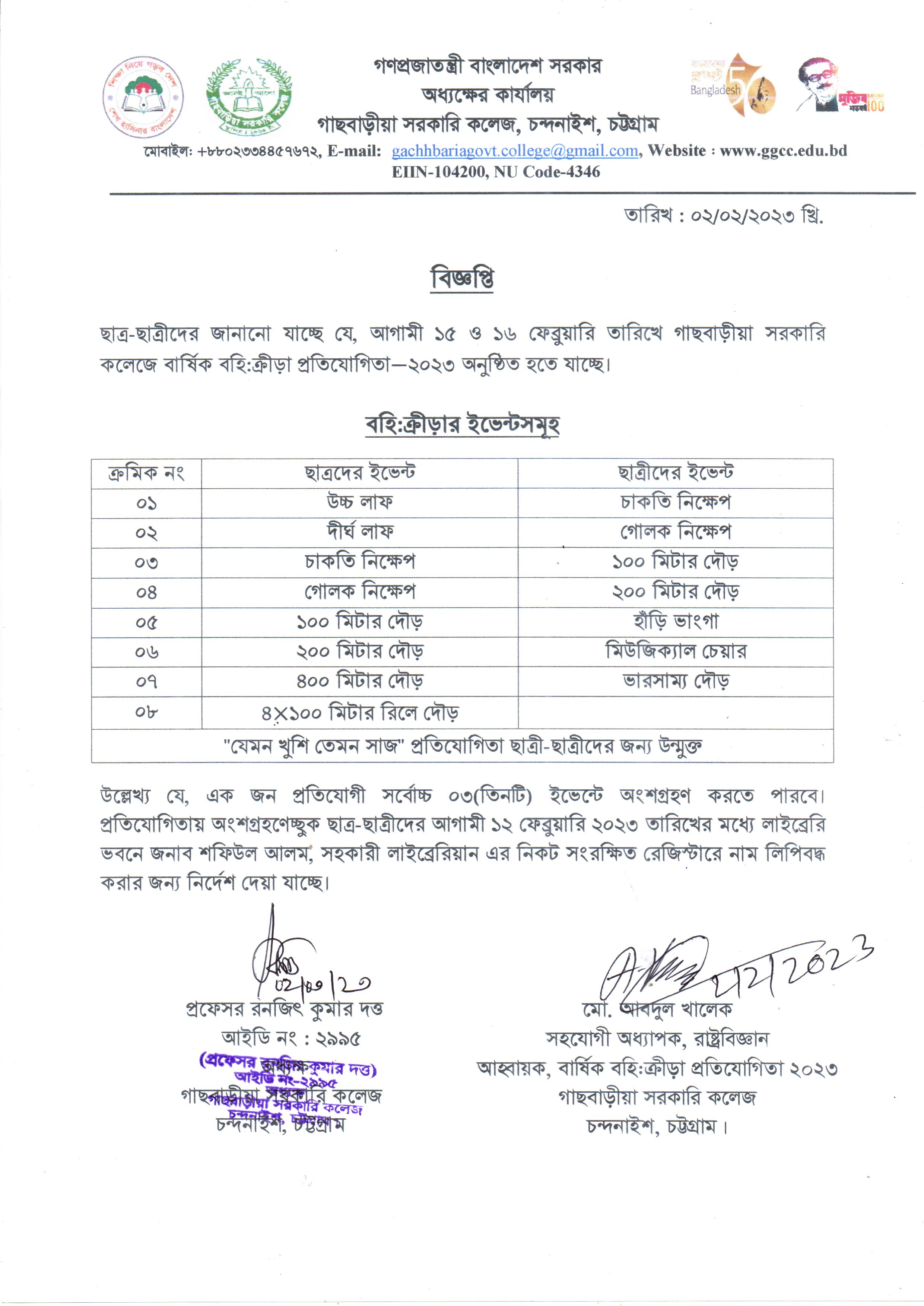 গাছবাড়ীয়া সরকারি কলেজ, চন্দনাইশ, চট্টগ্রাম।