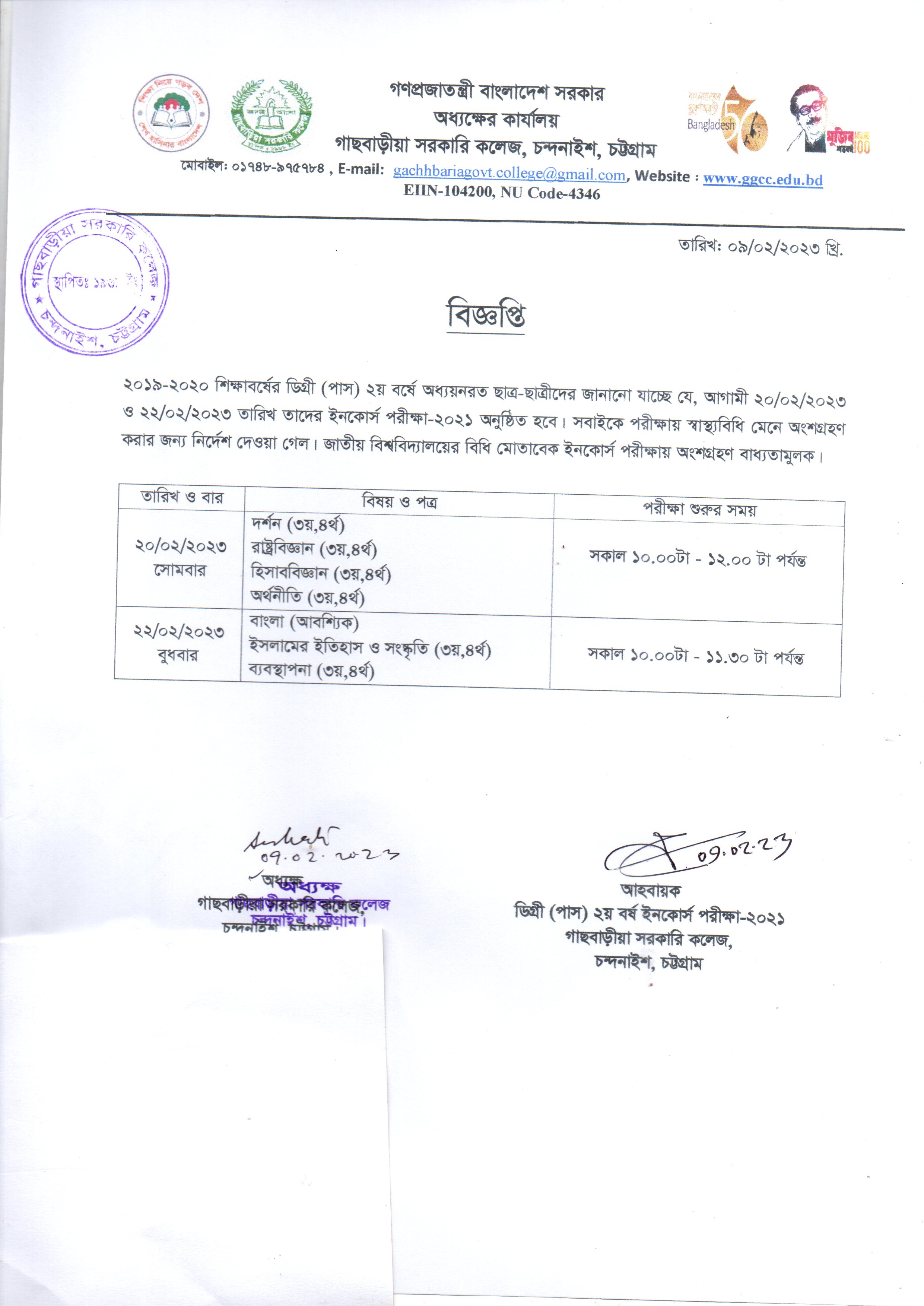 গাছবাড়ীয়া সরকারি কলেজ, চন্দনাইশ, চট্টগ্রাম।